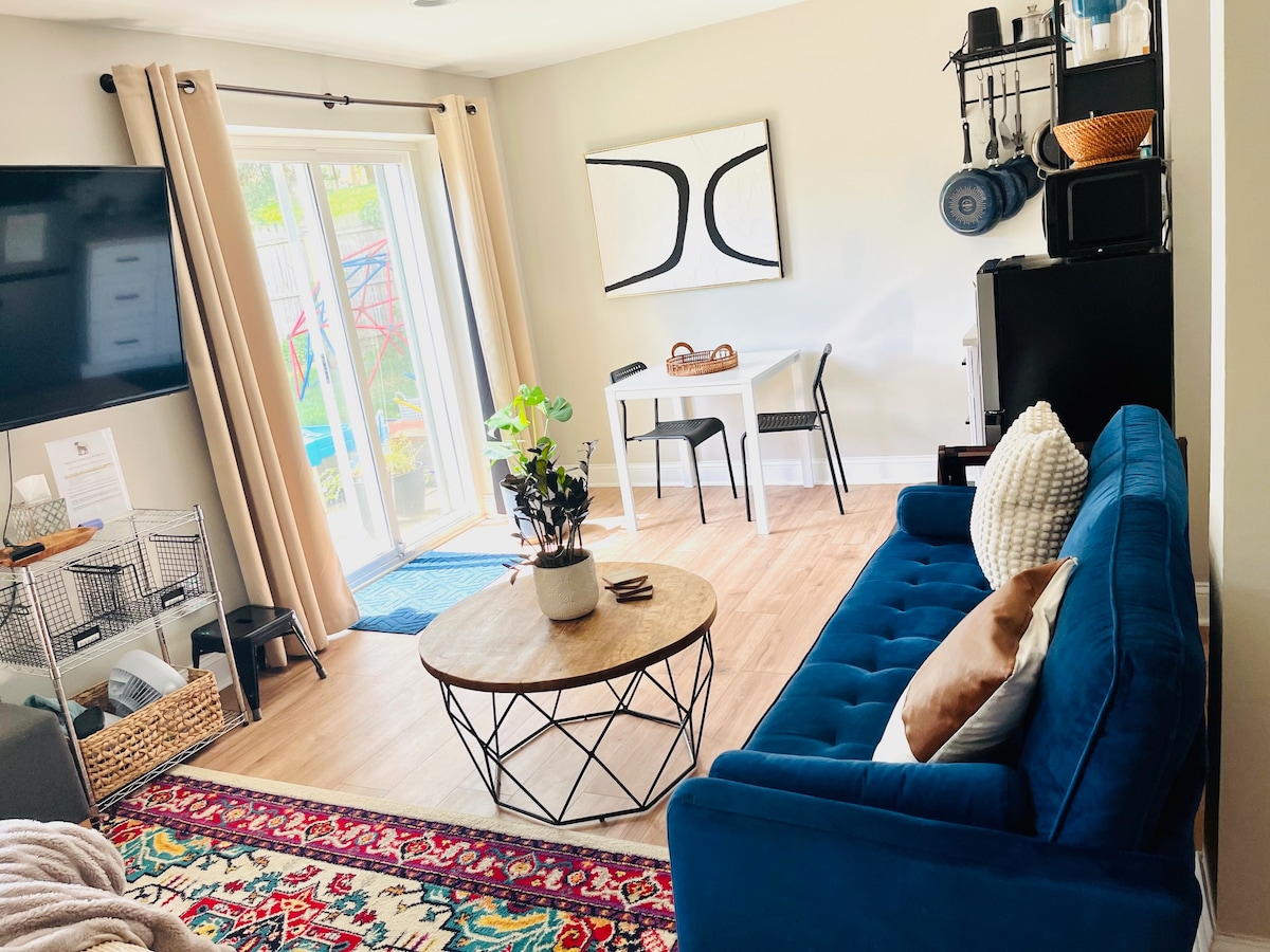 You'll love this unique escape! This charming Private basement studio apartment, offers comfort and convenience for your stay. it's perfect for travelers seeking home away from home. This place is fully renovated with a romantic fireplace, kitchen and bathroom ,a queen bed ,and a full sofa bed. Enjoy easy access to nearby attractions and amenities, along with the privacy and tranquility of your own space. We look forward to hosting you!