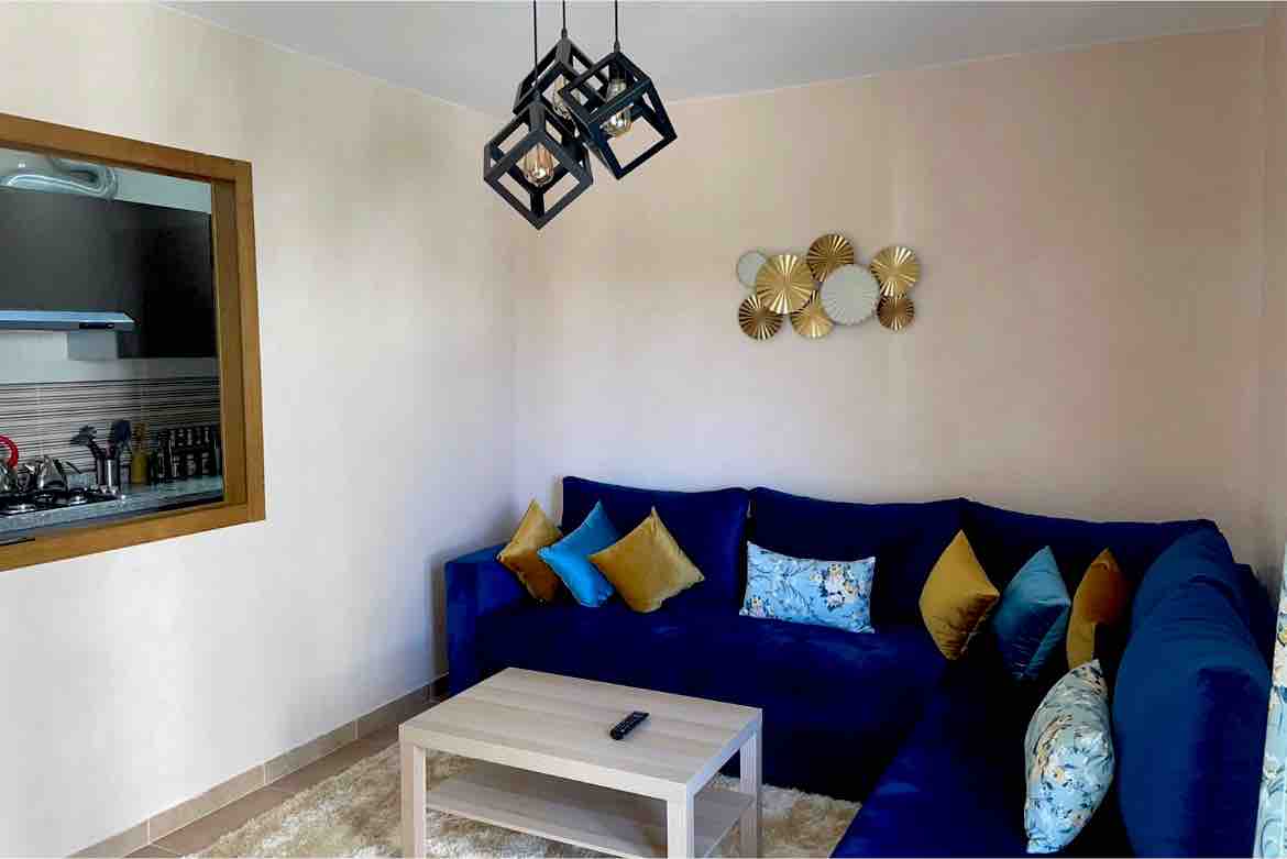 Increíble apartamento de 3 dormitorios con todas las comodidades totalmente amueblado con acceso a 7 grandes piscinas, gimnasio exterior, área de juegos para niños, estacionamiento privado, seguridad las 24 horas, wifi gratuito, este apartamento viene con impresionantes vistas a la montaña, a poca distancia de la playa, este apartamento está situado en el norte de Marruecos.