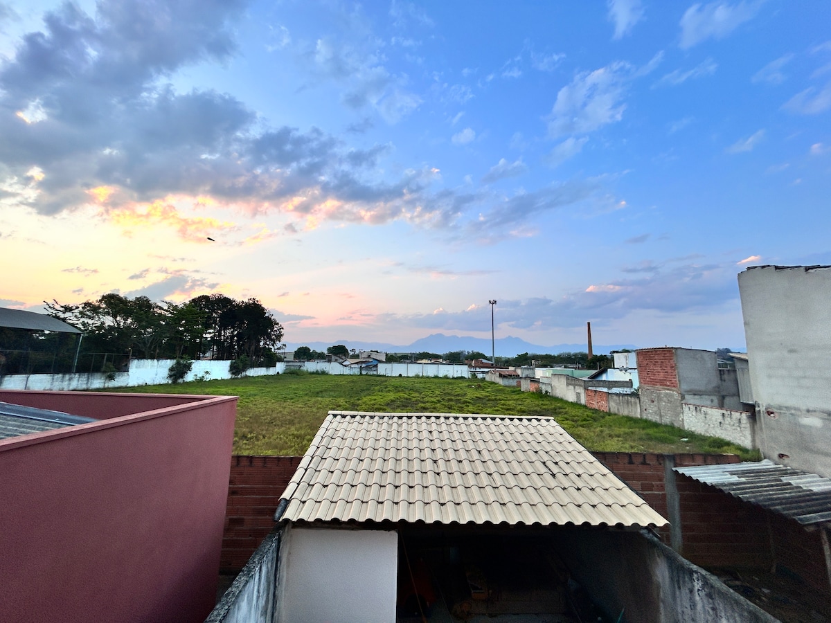 Acomódate con comodidad y estilo en el centro de Cachoeira Paulista con una vista increíble de la mantiqueira. Ubicado cerca de Canção Nova e INPE, perfecto para peregrinos, investigadores y viajeros de negocios. Disfruta de un ambiente cómodo con 2 dormitorios (1 suite), 2 baños, cocina y sala de estar equipada con TV inteligente de 43 pulgadas, Wi-Fi y estacionamiento.
