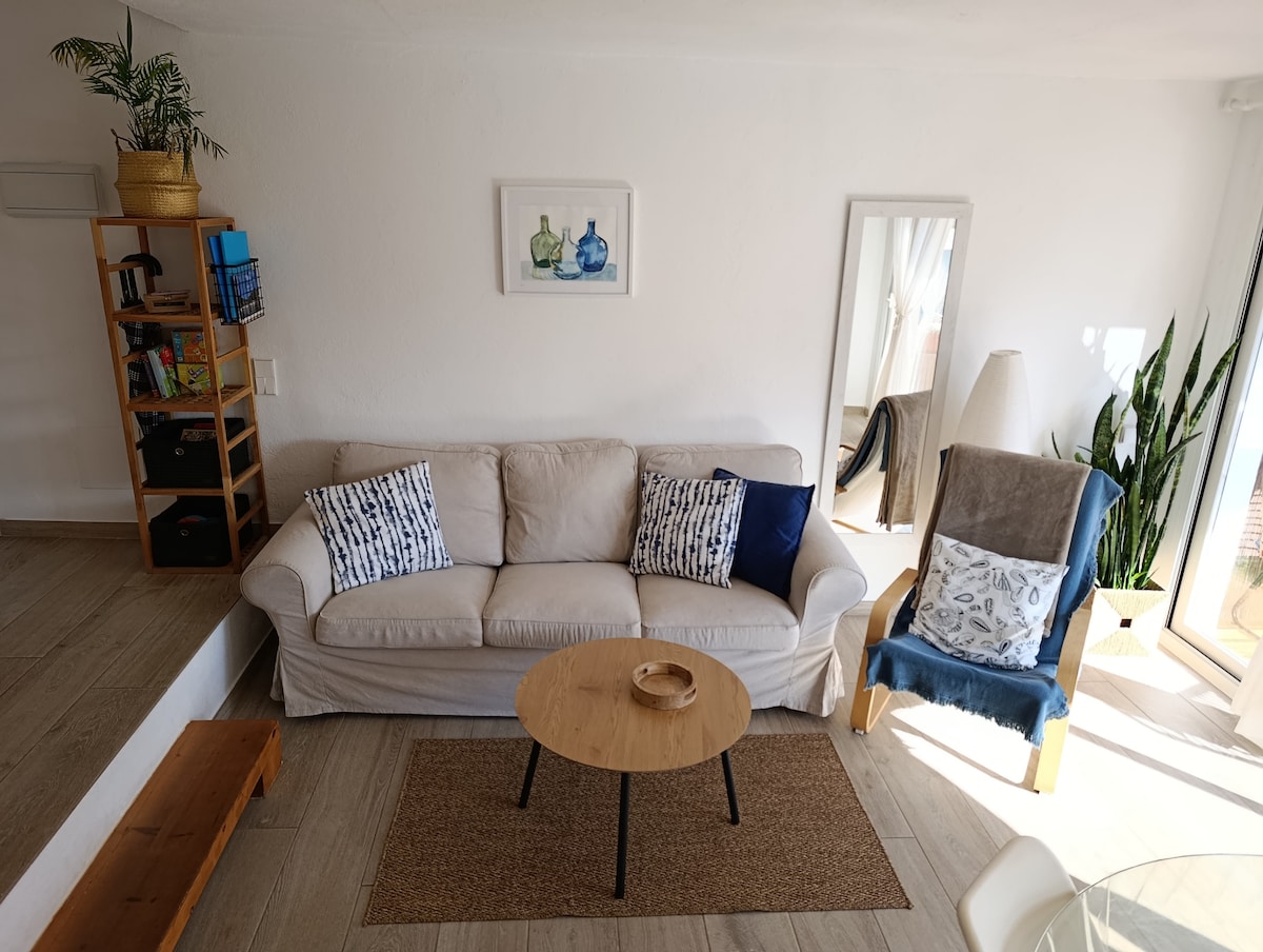 Àtic amb vistes al mar, a 50 metres de la platja. Per a 2 persones com a màxim. WIFI Gratis. Televisió Smart TV 1 habitació amb llit doble 1 bany Cuina americana, equipada. Terrassa amb vistes al mar i al poble. Aire condicionat a la sala i a l'habitació Rentadora. Equipat amb tovalloles de bany i llençols. Cancel·lació flexible. Parking de pagament de l’entrada del poble a 300 metres, fora de temporada alta es recomana aparcar per el carrer Solitari o per la zona de la platja del llané