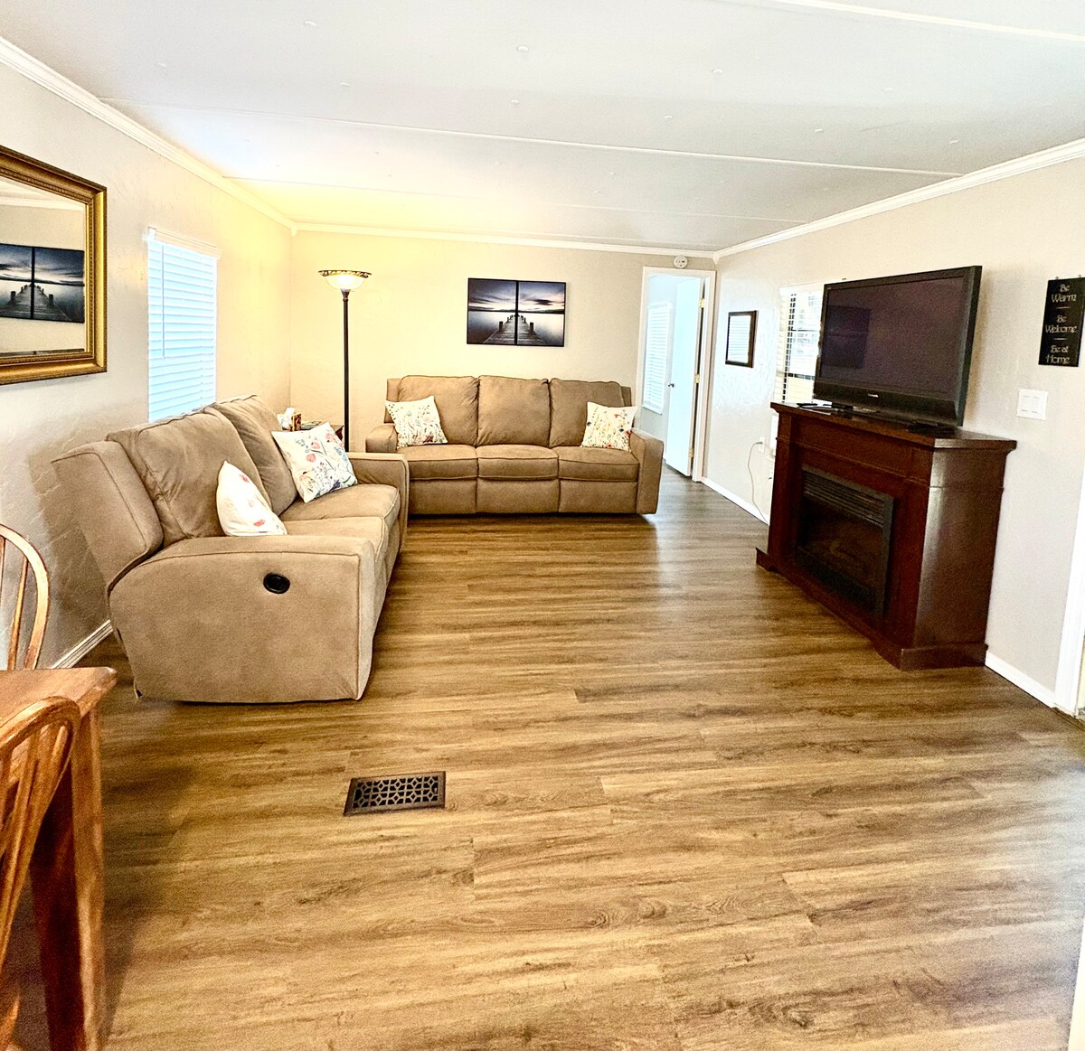 Si buscas un refugio tranquilo y silencioso, Geneva's Get-Away es el lugar ideal para ti. Esta casa de tres camas y dos baños ha sido completamente renovada y se encuentra en 80 acres de terreno de rancho. La casa tiene capacidad para hasta 6 personas con camas tamaño queen en 2 de los dormitorios y una cama tamaño king en el dormitorio principal. La cocina actualizada cuenta con cafetera, máquina de hielo y todo lo necesario para preparar comidas. Una sala de sol adicional ofrece espacio adicional para reunirse con la familia durante tu estancia.