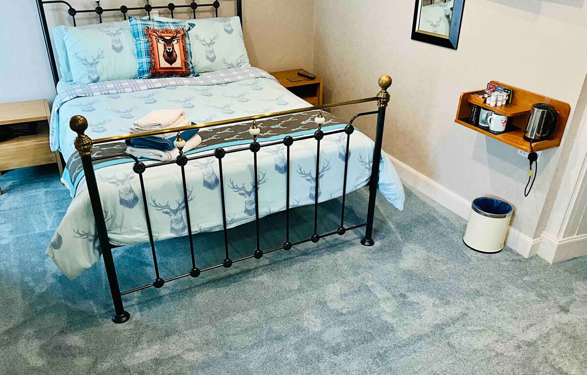 Alójate en un establo único convertido en una hermosa zona rural de Speyside. Los huéspedes tienen uso exclusivo del espacio de arriba en nuestro hogar que comprende: Cama tamaño king. Baño privado con bañera y ducha separada. Zona de rellano con espacio de trabajo, microondas, mininevera con leche, hervidor con té y café. Tazas, platos, cubiertos, etc. DISPONIBLE PARA RESERVAR POR SEPARADO LA HABITACIÓN CON CAMA TIPO KING Y BAÑO PRIVADO DE LA PLANTA BAJA