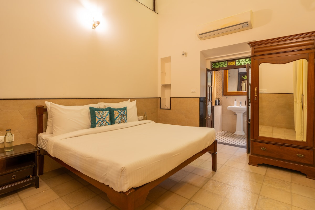 Una hermosa villa de madera de 4 dormitorios con piscina de hidromasaje situada en una localidad privilegiada en el corazón de Siolim. Es una villa bien iluminada y completamente amueblada con sala de estar, despensa funcional y una zona de estar privada rodeada de vegetación por todos los lados. Está muy cerca de la famosa playa de Vagator y Morjim y del fuerte de Chapora, lo que la convierte en una gran base de operaciones, mientras exploras todo lo que ofrece Goa. Hay múltiples restaurantes, tiendas de vinos y supermercados alrededor para satisfacer todas tus necesidades vacacionales.