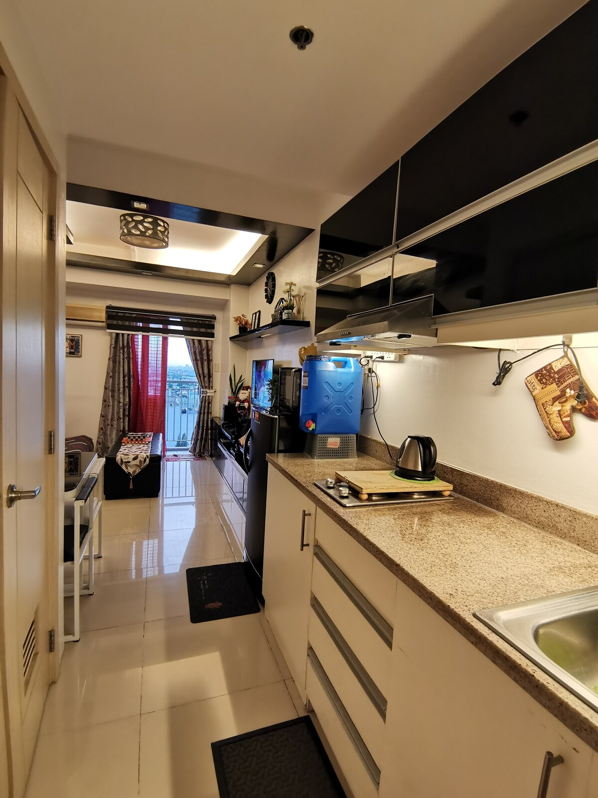2 unidades combinadas de estudio Unidad bien desinfectada Ropa de cama limpia. Bidé automático con control remoto Ducha fría y caliente Cocina totalmente funcional (No se permite la fiesta samgyup ni cocinar carne seca) Conexión wifi de 200 Mbps Netflix/Disney+ Smart TV de 55 pulgadas Alojamiento totalmente climatizado. COMPLEMENTARIO 1 galón azul de agua potable recargable GRATIS Uso GRATUITO de toallas para cada huésped Uso GRATUITO de líquido lavavajillas y jabón de manos Para huéspedes adicionales podemos proporcionar colchón extra.