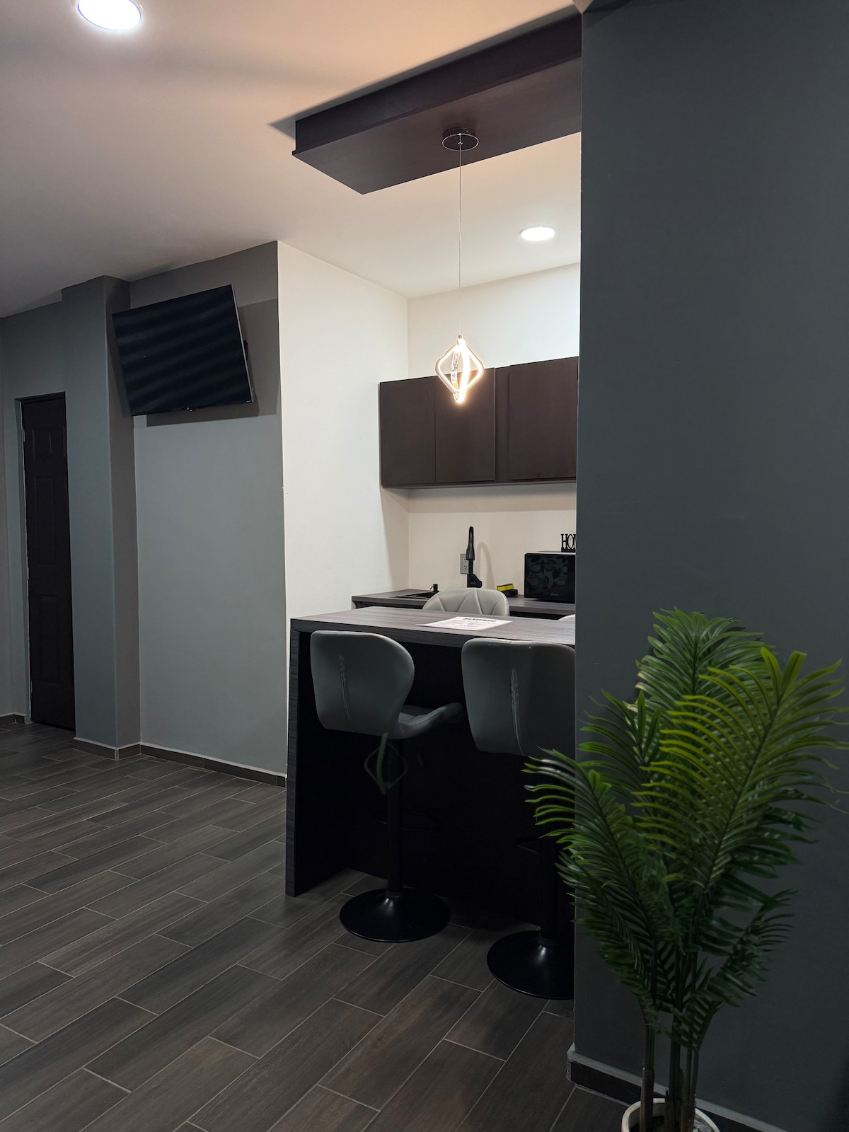 Este departamento combina estilo moderno, comodidad y tranquilidad en un solo espacio. Cada detalle ha sido pensado para ofrecer una estancia relajante y funcional, con una decoración elegante en tonos neutros, muebles nuevos y una iluminación natural que crea un ambiente acogedor. Cuenta con área de trabajo, cocina equipada, sala cómoda y recámara confortable, ideal tanto para descansar como para trabajar. Un lugar perfecto para disfrutar, desconectarte o inspirarte.