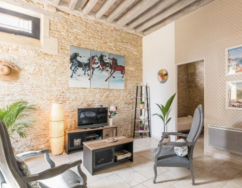 Antiguo granero de piedra, renovado y equipado en un terreno cerrado con dos plazas de aparcamiento privadas, con capacidad para 6 huéspedes . Se proporcionan sábanas y toallas. Camas hechas a la llegada. El Granero pone a su disposición una gran piscina (4x8) / terraza compartida con los propietarios, un jacuzzi privado y muchos juegos al aire libre. Encontrará todas las comodidades modernas y la tranquilidad del campo a pocos minutos de Bayeux y de las playas del desembarco.