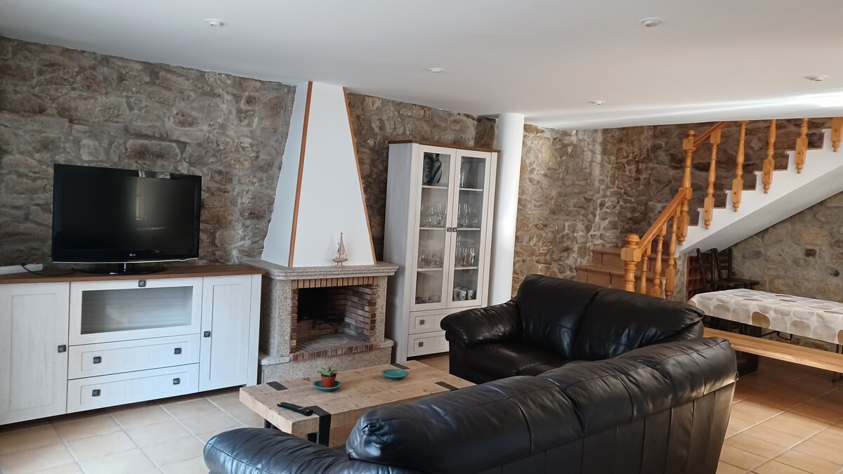 Nuestro alojamiento está en una zona rural cercana a la ría , ubicada a 11 km(por la ruta más corta)de la playa de La Lanzada, a 1 km de la zona típica de furanchos, a 50 km de Vigo,a 8 km de Cambados y a 15 de Combarro y,para los amantes del senderismo, tienen a menos de 3 km,la Ruta Da Pedra e da Auga.Restaurante a 3 km donde podréis disfrutar de la gastronomía gallega acompañados de vuestras mascotas.