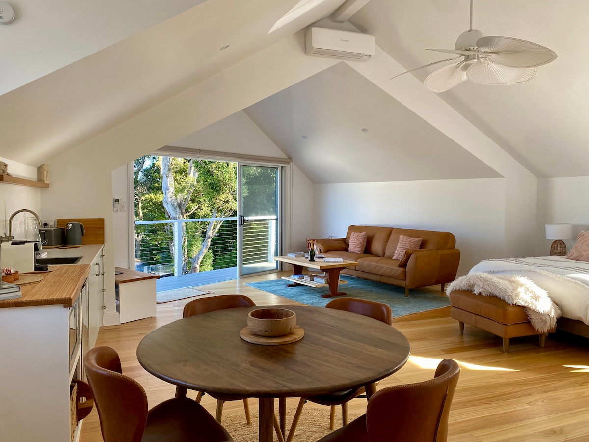 Nuestro estudio independiente es la perla de nuestra propiedad, con una cómoda cama doble, sala de estar, tu propio baño y cocina pequeña. En tu terraza encontrarás una barbacoa para tu propia comodidad. WIFI y estacionamiento están incluidos en tu estadía. Las impresionantes vistas a la montaña, los pájaros y los árboles hacen que tu estancia sea inolvidable. Vivimos en un vecindario tranquilo ubicado en las faldas de la montaña Cambewarra y con una ubicación ideal entre los pintorescos pueblos de Berry y Kangaroo Valley.
