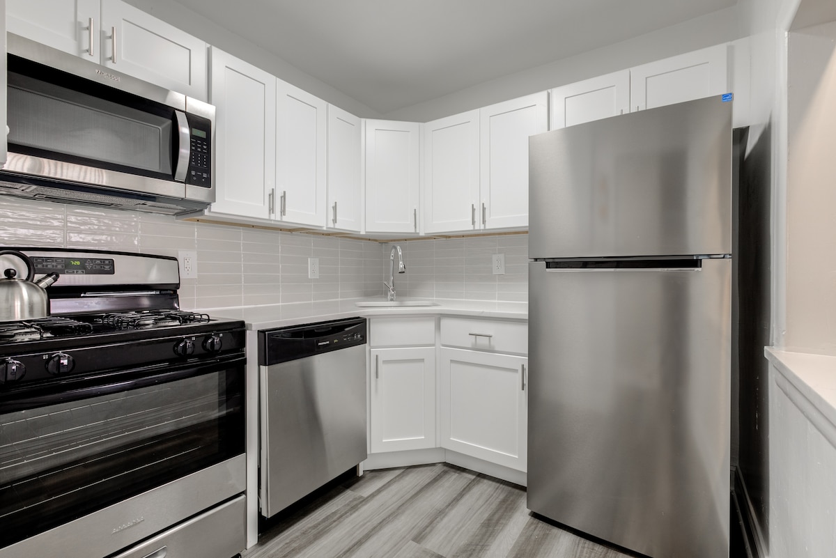 APARTAMENTO DE ☆DISEÑO de☆ 2 dormitorios y 1 baño RECIENTEMENTE RENOVADO en el sur de Nueva Jersey. Fácil acceso a Filadelfia. Diseño cómodo y elegante. - A 10 minutos del centro de la ciudad de Filadelfia. - A 15 minutos del aeropuerto internacional de Filadelfia. - A 15 minutos del Wells Fargo Center. - A 10 minutos de Lincoln Financial Field. - A 10 minutos de Citizens Bank Park. - (2) King/Queen - Memory Foam - (3) televisores de 65/55 pulgadas con Netflix - Wifi gratuito y rápido - Restaurantes cercanos. - Gestionado profesionalmente