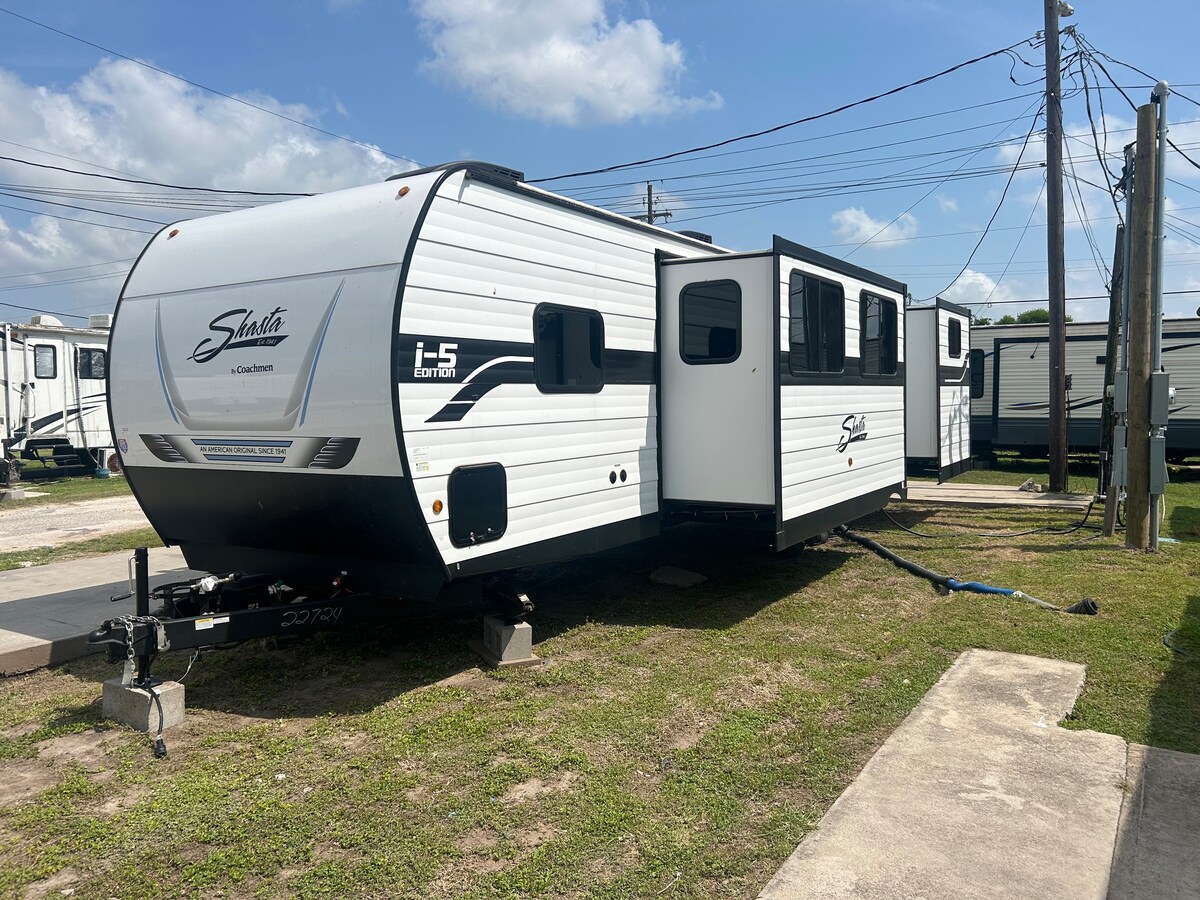 Get cozy and settle into our RV “ La Blanca” in Brownsville, TX., (RV is like a house, but in a different way) -Parked in a private Property Driveway, next To our Family Home. -Please Read cancellation Policy, Before Booking) 31 minutes to SpaceX Facility, 30 minutes to sunny beach Shout Padre Island & Mall is only 15 min. - Weekly & Monthly Discounts