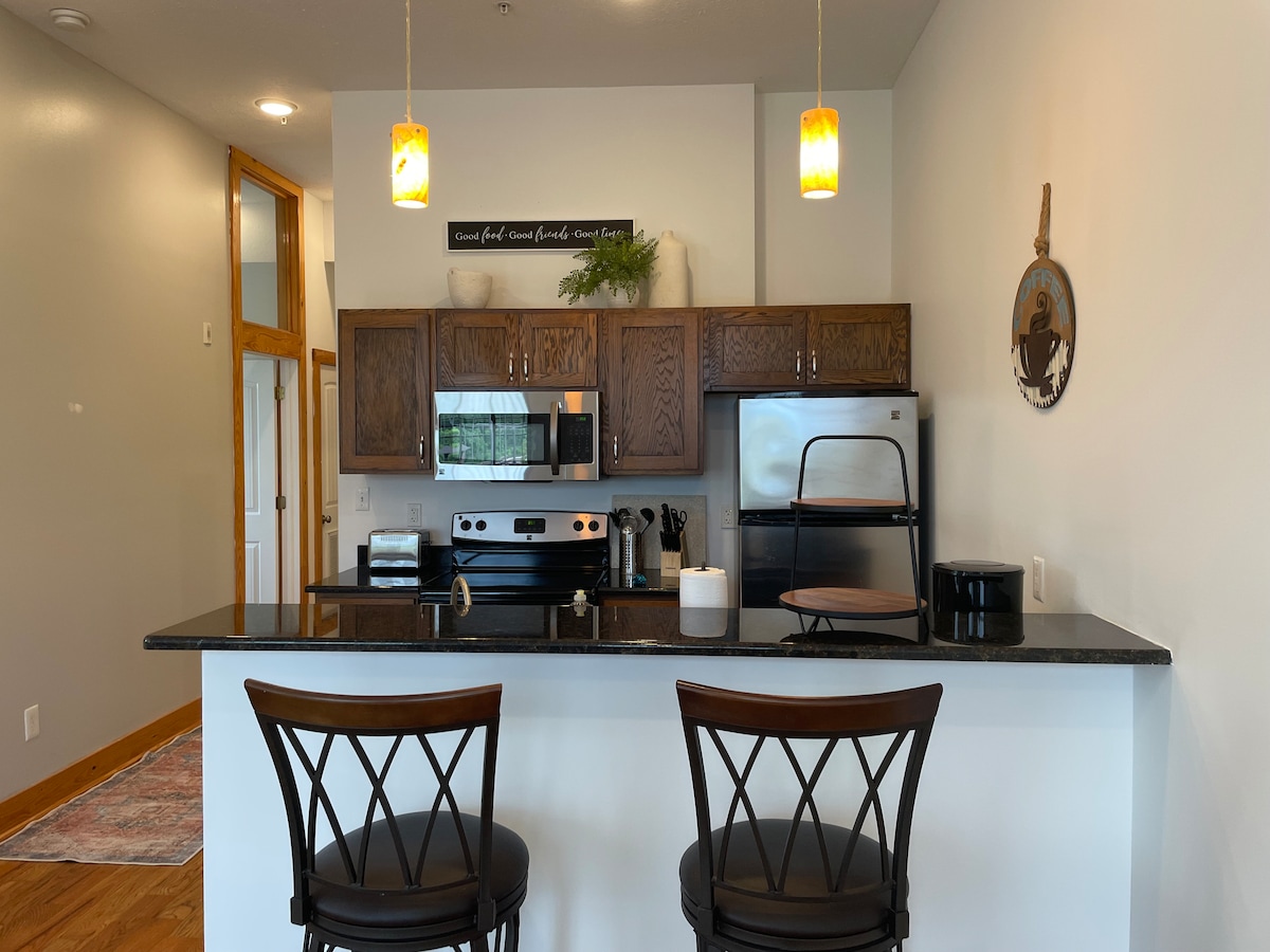 Nuestro loft de nueva construcción se encuentra en el corazón del centro de Lynchburg, en BluffWalk. Toma una bebida fría de la cocina completa y sal a disfrutar de las impresionantes vistas al río James desde la terraza privada antes de retirarte al acogedor dormitorio con cama tamaño king o a la cama queen murphy. Estamos a poca distancia a pie de los mejores locales de música, restaurantes, bares, tiendas y senderos. También estás a solo unos minutos en coche de universidades y hospitales locales. ¡Esperamos que lo disfrutes tanto como nosotros!