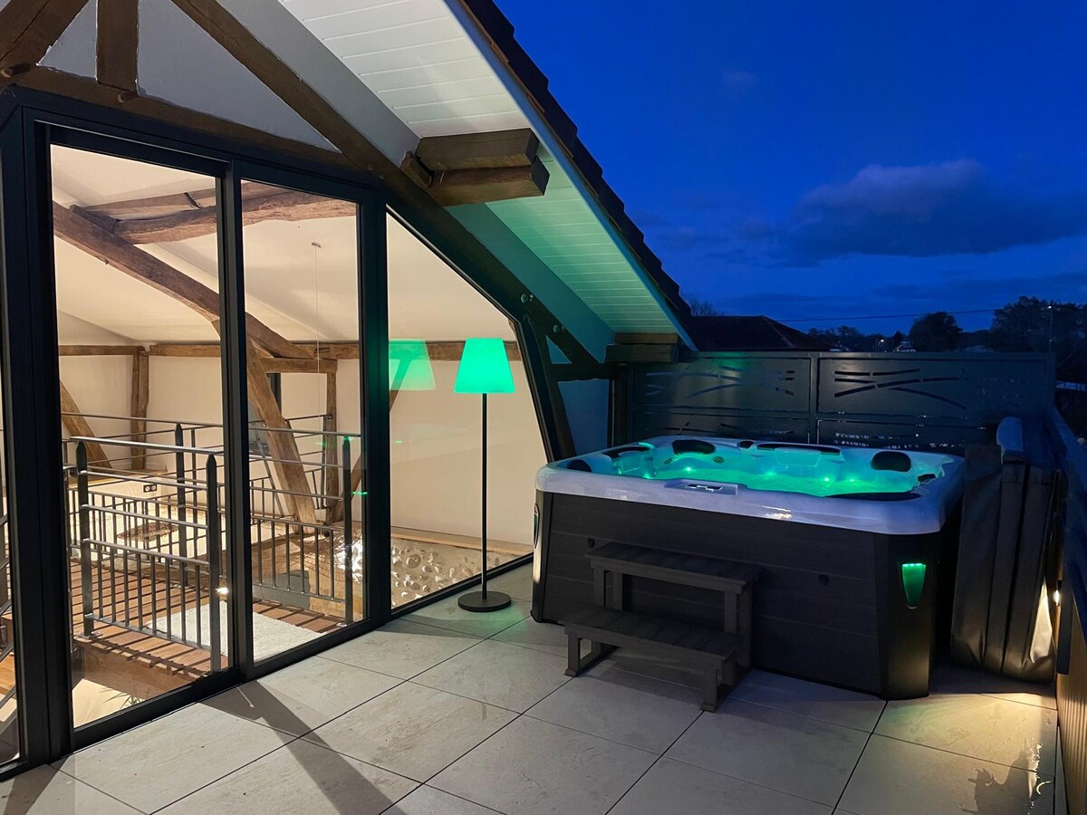 ¡Antiguo granero reformado con vistas a los Pirineos! En el centro de un pueblo tranquilo, venga a disfrutar de la tranquilidad de este alojamiento. Granero independiente, separado de nuestra casa y de otra casa , ¡compartirá el jardín y su magnífica piscina laguna! En la planta baja una habitación de 21 m2 con baño y aseo , con salida a la terraza con jacuzzi privado. Un garaje de 20 m2 da acceso a una escalera que conduce a la planta superior a la sala de estar y su terraza con vistas 🏔️