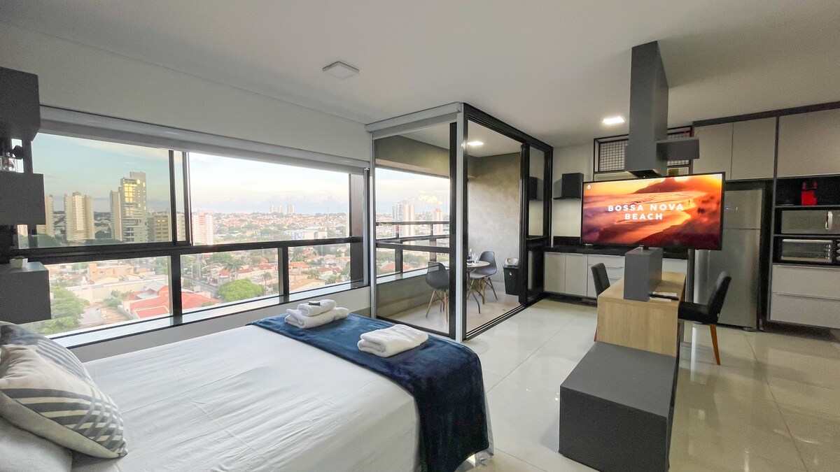 Moderno estudio en Jardim dos Estados, con vistas panorámicas y estructura completa. Tiene capacidad para 4 personas (cama queen + sofá cama), tiene aire acondicionado, Wi-Fi de 300 mbps, cocina equipada, dos televisores inteligentes y garaje privado cubierto. En el edificio: piscina climatizada, piscina infinita, sauna seca, gimnasio, espacio de coworking, sala de juegos y lavandería (uso de pago). Conserje las 24 horas, ascensor panorámico y mucha comodidad en una de las mejores ubicaciones de la ciudad.