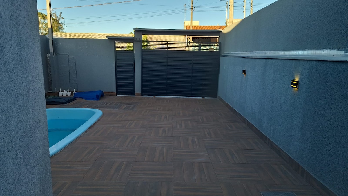 La casa tiene dos dormitorios con aire acondicionado frío y caliente, una suite con cama king size y otra habitación con una cama queen y dos individuales y dos colchones slt. En la suite hay un televisor inteligente con Netflix, HDTV (cientos de películas y series), wifi de 750 megas, cocina planificada con todos los utensilios domésticos para sus comidas. Se proporcionan sábanas, toallas y toallas de baño. El exterior está monitoreado. El huésped no se preocupa de inmediato por nada. Los espero. Venga a vivir esta experiencia.