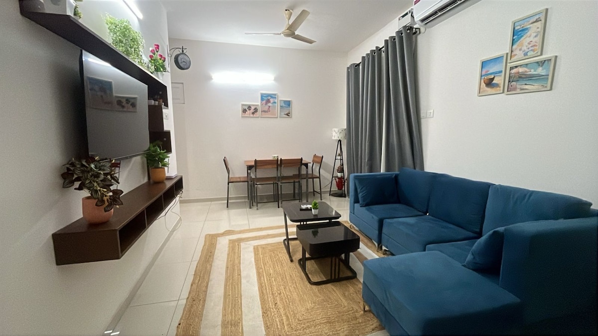 Departamento de 1 dormitorio totalmente amueblado a solo 7 minutos a pie de Colva Beach. Esta casa pequeña, linda y acogedora es perfecta para parejas o familias que buscan relajarse y disfrutar de tiempo de calidad en un entorno sereno cerca de la playa, un espacio acogedor con Wi-Fi, una cocina totalmente equipada y un balcón. Ubicado en un complejo seguro con un gimnasio moderno. Tiendas, restaurantes, discotecas y alquileres a menos de 200 metros. Como se trata de listados nuevos, puedes consultar los comentarios sobre mi alojamiento.Todos mis listados están en el mismo complejo.