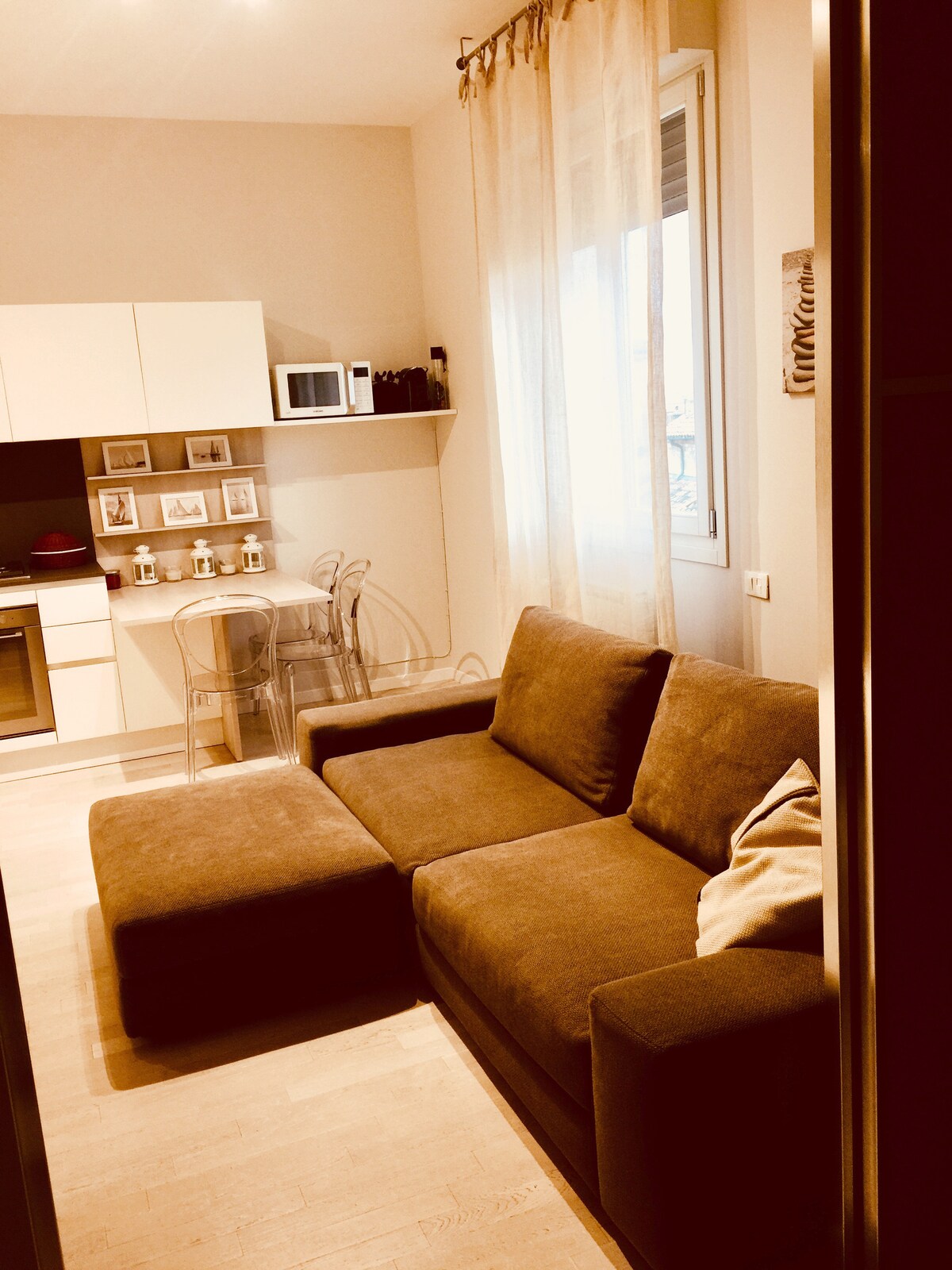 El departamento se encuentra en una pequeña y antigua boloñesa clásica en una calle tranquila en el centro histórico de la ciudad. Todas las principales atracciones turísticas y restaurantes tradicionales están a poca distancia a pie. " La Finestrella" amada por los visitantes está a unos pasos. Alojarse aquí es ideal para una pareja romántica. Este piso está limpio y desinfectado. Airbnb lo verificó y fotografió.