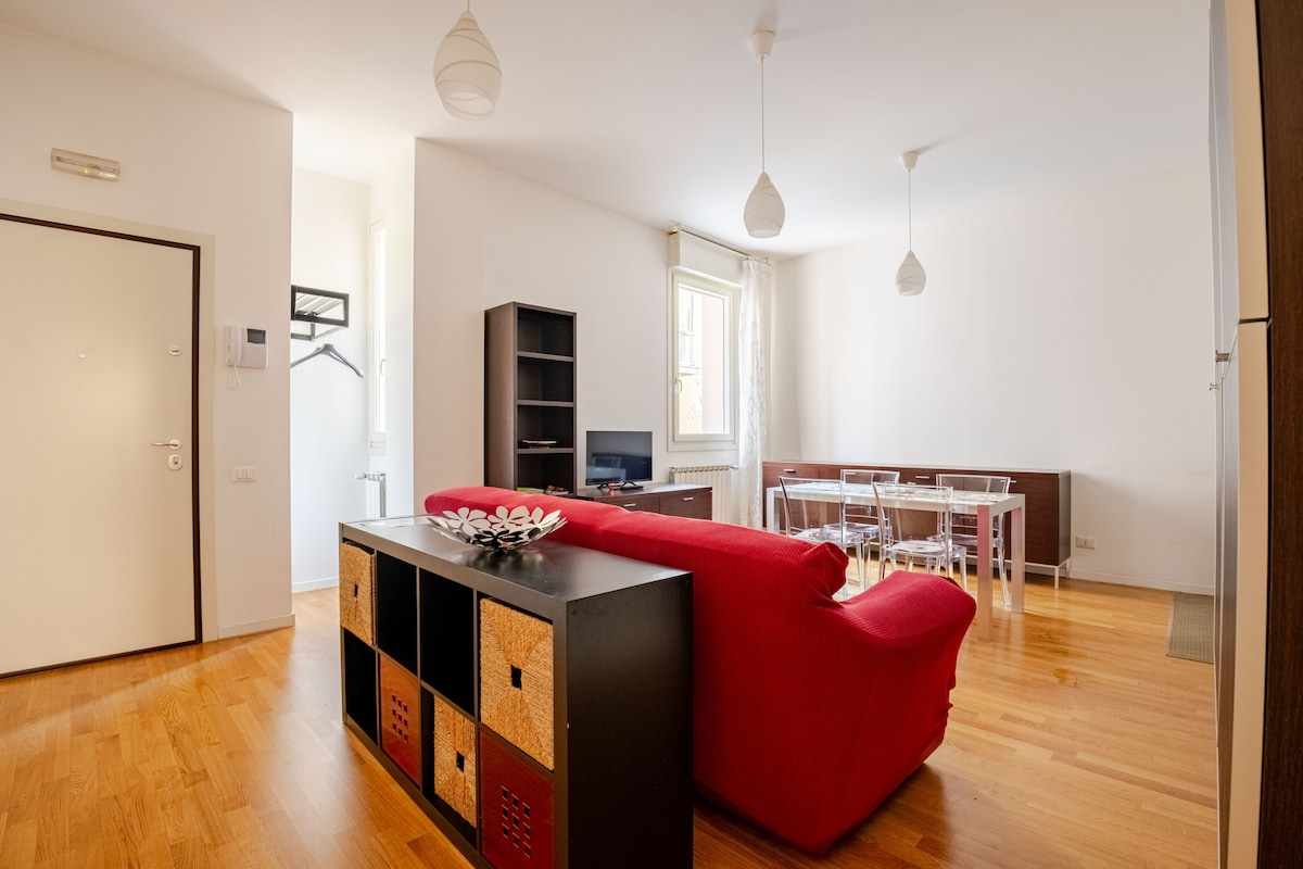 Ubicado en el centro histórico, nuestro apartamento es un oasis de paz perfecto para explorar la ciudad y relajarse. Luminoso y acogedor, ofrece una amplia sala de estar ideal para relajarse, una cocina totalmente equipada y un dormitorio tranquilo, con vistas a los árboles de los jardines interiores. A solo 10 minutos a pie de la Piazza Maggiore y a 16 de la estación.