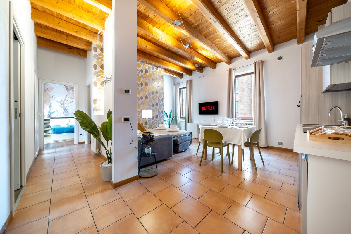 Apartamento típico boloñés, ático de unos 70 metros cuadrados, en el centro histórico de Bolonia con ascensor, dos dormitorios dobles, a pocos minutos de la estación de tren. Feria a 15 'en autobús. Trenes a Florencia, Módena y Ferrara en 29 ', Rímini a 25', Milán a 50 '. Terraza panorámica, con vistas a los tejados rojos de la ciudad, equipada para cenar y tomar el sol. El edificio está en el borde de la ZTL, por lo que es conveniente para aquellos que viajan en auto. Ducha y jacuzzi, WIFI, Netflix.