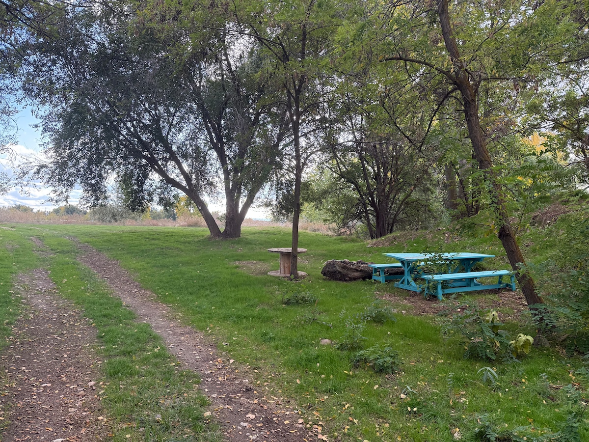 Las vistas al amanecer y al atardecer te esperan en el corazón de la región vinícola de Sunnyslope. Los vinos de Idaho se están volviendo mundialmente reconocidos por su distintiva singularidad inducida por el clima. Alójate aquí para una boda en los terrenos (¡reservada por separado!) o recorre las muchas bodegas cercanas. Hay más de una docena de bodegas a 15-20 minutos de esta hermosa y aislada propiedad frente al río. ¡Pesca justo al lado del muelle, kayak, canoa o caza de patos justo al salir por la puerta principal! Olvídate de tus preocupaciones en este espacio espacioso y sereno.
