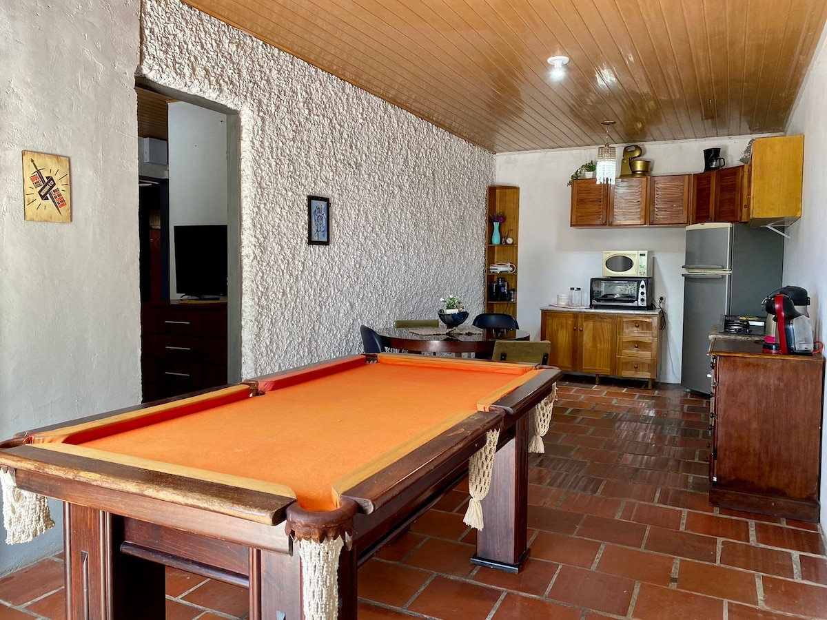 Casa espaciosa, barrio tranquilo y mucha comodidad para relajarse a tres cuadras del mar. Garaje cubierto para hasta dos coches. Cuenta con 2 suites con cama de matrimonio y aire acondicionado, 2 dormitorios con cama individual y litera con ventilador de techo. La sala tiene aire acondicionado y una mesa para hasta 8 personas. La piscina une el ambiente de la parte trasera con la casa, tiene una mini playa, ¡a los niños les encanta! Piscina disponible de noviembre a abril en temporada alta