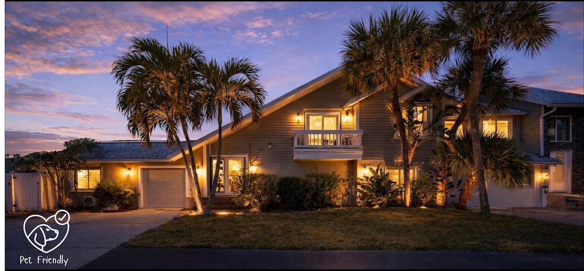 Diviértete con toda la familia en esta elegante y exclusiva casa con piscina, frente al mar con magníficas vistas al agua. Observa los delfines y manatíes desde el patio trasero o mientras estás en la piscina. Situada en un bonito barrio bien cuidado en el corazón de Cocoa Beach. Casa remodelada con muelle, vistas al canal y al río Banana, piscina, ¡a solo 0,7 millas a pie de la playa! A menos de 1 milla del muelle, Ron Jons, Starbucks, restaurantes y tiendas. A 1 hora de Disney, a menos de 30 minutos del Centro Espacial Kennedy, del zoológico de Brevard y de Viera.
