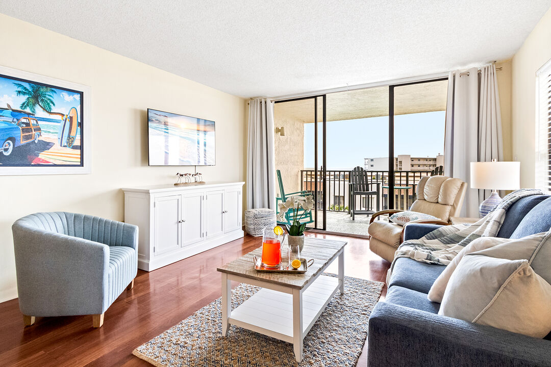 Disfruta de las vistas al mar de Cabo Cañaveral desde tu balcón privado. Mira cómo pasan los cruceros a diario mientras te relajas en este apartamento de un dormitorio y dos baños frente al mar. Este hermoso apartamento tiene capacidad para cuatro personas y cuenta con una cama tamaño king y baño completo en el dormitorio principal. El sofá también se convierte en una cama en la acogedora sala de estar con su baño principal privado. La cocina tiene encimeras de granito con electrodomésticos de acero inoxidable y todo lo que necesitas está aquí en esta cocina totalmente equipada.