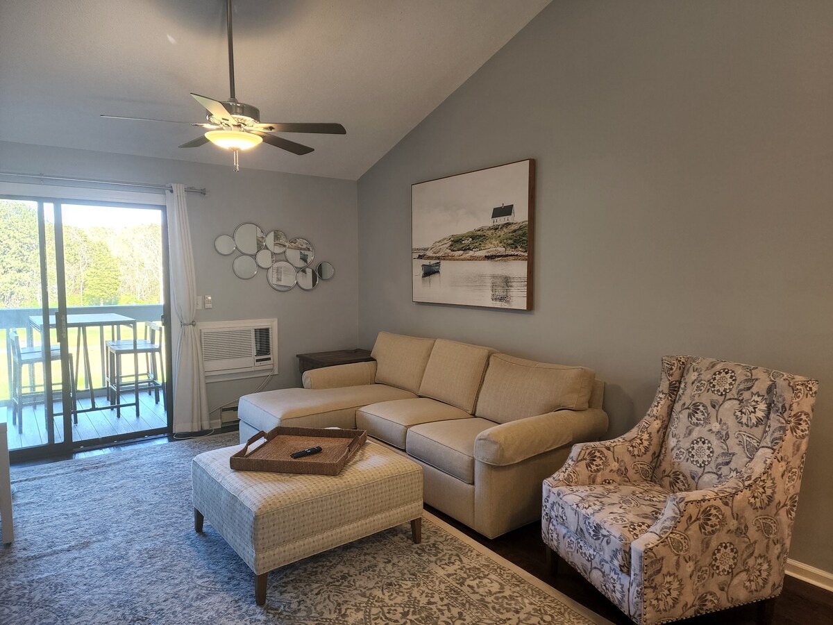 Enjoy this 1,000 SF, 2 bed, 2 full new marle tile bathrooms, 2 showers, at Ocean Edge, right in the middle of the golf course. This Airbnb is a full member of the Ocean Edge Resort and allows you access to Ocean Edge golf, and free resort access included up to 6 guests to swimming pools, tennis, gym & pickleball. No one lives here, it is absent of personal items. From the moment you enter, you will know that you have made a great choice and that your time here will be above your expectations.