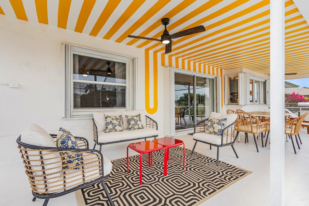 Disfruta de Cape Coral como nunca antes, todo desde esta hermosa villa de 3 dormitorios y 3 baños. Esta elegante villa cuenta con un vibrante interior decorado con muebles italianos y una cocina totalmente equipada. ¡Comienza el día con unos largos en la piscina privada antes de dirigirte a la playa pública del Yacht Club, al parque acuático familiar Sun Splash o a Pine Island para tomar el sol! Después de días de aventuras, continúa creando recuerdos en casa con una barbacoa familiar y un baño en el jacuzzi o disfruta de una noche de cine con tus seres queridos.