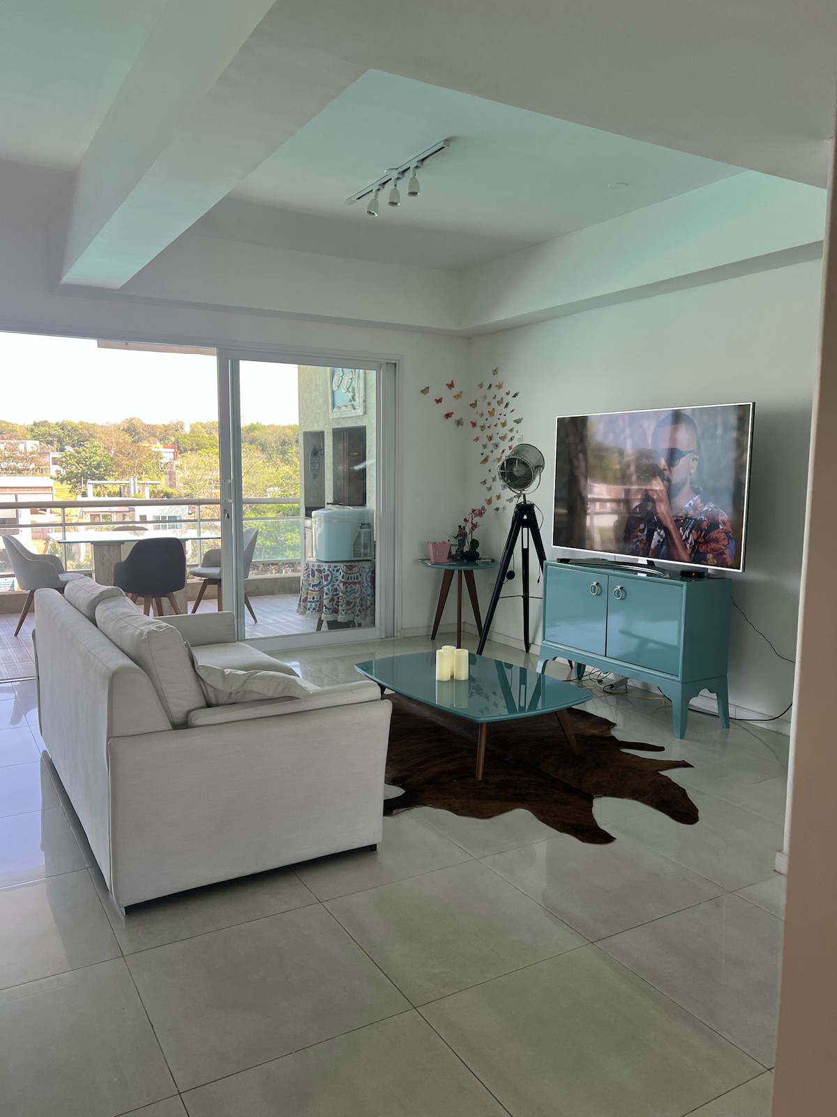 Departamento nuevo a estrenar en edificio lujoso. Tiene 40m² propios, con Smart TV, WIFI, y en el edificio tenes todos los amenities: Piscina , Quincho climatizado con parrilla, Sala de juego de niños, gimnasio equipado, etc Queda a 5 minutos en auto del centro corporativo mas valorado de la capital, y a 25 minutos caminando. Tambien queda a 11 minutos en auto al aeropuerto Silvio Pettirossi Tiene una cama matrimonial + un sofa cama. En total se pueden hasta 3 personas para dormir.