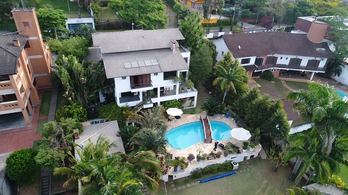 ¡La casa es una delicia! Amplia y accesible. Habitación con chimenea, cocina y zona de barbacoa integrada en un enorme balcón. ¿La vista? Solo puedes ver el verde... Los tucanos y las ardillas serán tus vecinos. ¡Seguro y divertido para niños de todas las edades y con piscina! Ideal para fines de semana/días festivos, celebraciones familiares, para trabajar o pasar temporadas más grandes, incluso para recuperar la salud. Estamos dentro de un bolsillo residencial tranquilo y al mismo tiempo cerca de restaurantes, centros comerciales, mercados.