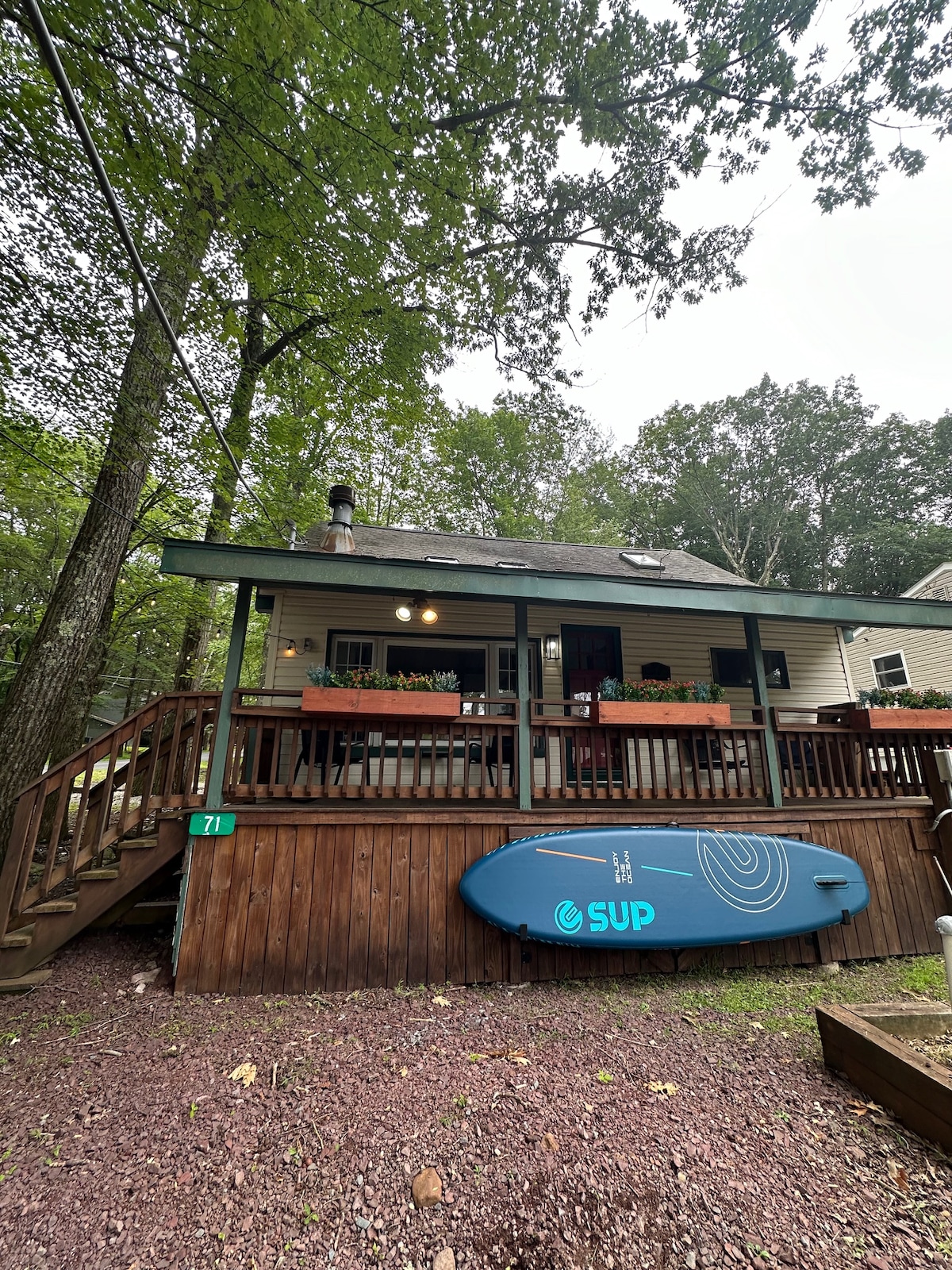 Quick drive to slopes & short walk to the lake beach - Poplar Cottage is a clean, modern 3 bed/2 bath renovated with thoughtful design that encourages total relaxation. ★ "This place is amazing!" ★ "Definitely worth the booking!" - Fully equipped kitchen - 2 seat kayak - Spacious deck w/chiminea - Solo Stove firepit - Washer + Dryer - Gas grill - Smart TVs - Sonos speakers » 5 min drive to Lake Harmony » 6 min drive to Pocono Raceway » 8 min drive to Big Boulder ski resort