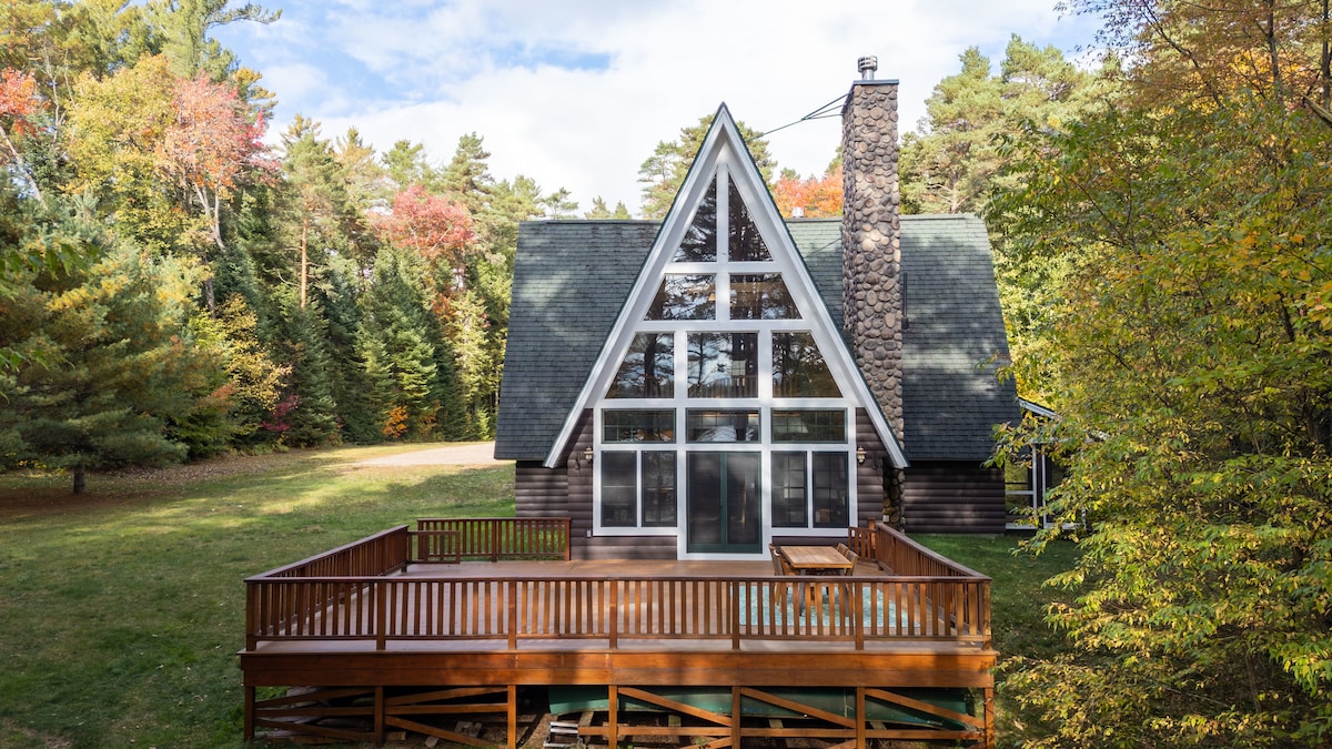 El diseño moderno en un entorno único crea una experiencia especial en Adirondack sin multitudes. Nueva construcción en 3 niveles con luz natural en todas partes. Aislado, pero lleno de luz y amplias vistas de las montañas, el huerto Legacy y el bosque. Dormitorio principal con baño completo, espacio de trabajo. La cocina totalmente equipada y la bañera de hidromasaje de cedro en la terraza (¡disponible todo el año!) hacen del Chalet un lugar muy especial. Excelente acceso a todas las actividades de invierno al aire libre.