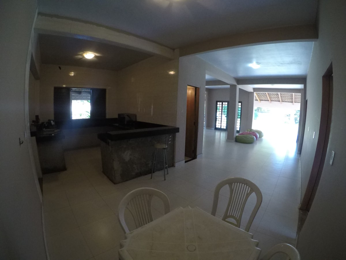 Vuelva a conectar con la naturaleza en este lugar inolvidable. Un espacio para eventos en medio de la naturaleza con una infraestructura increíble, piscina climatizada, jacuzzi, playa y una deliciosa cascada. Hay 6 habitaciones, 5 suites y una habitación individual con 3 camas, todas con aire acondicionado. Hay 18 personas durmiendo en la cama y tenemos 4 colchones extra. Tenemos un hermoso mirador y estamos en Goianira a 25 minutos de Goiânia Venga a conocer nuestro rincón, le encantará
