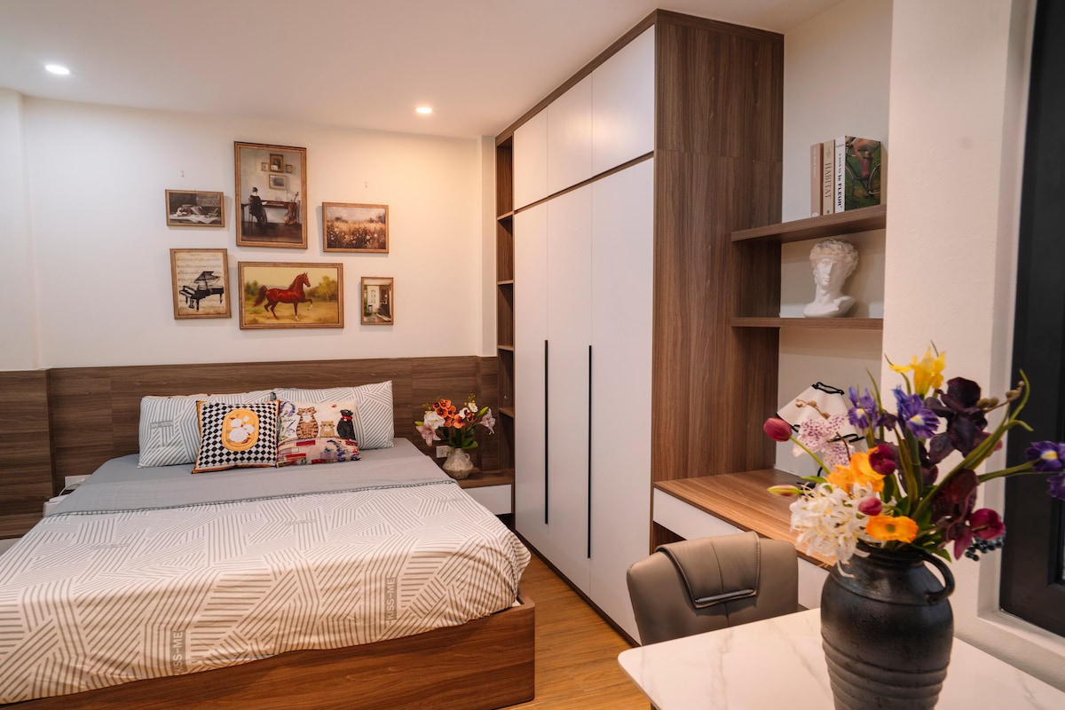 Premium Japanese-style apartment in central Hanoi, walking distance to Diplomatic Academy & Foreign Trade University. Guests have full access to entire unit: living room, bedroom, bathroom & fully-equipped kitchen. Legally licensed for short/long-term stays. Bedroom with 2 single beds or 1 double bed, perfect for extended stays. Building amenities: free gym, swimming pool ($2/visit), supermarket, reading roo