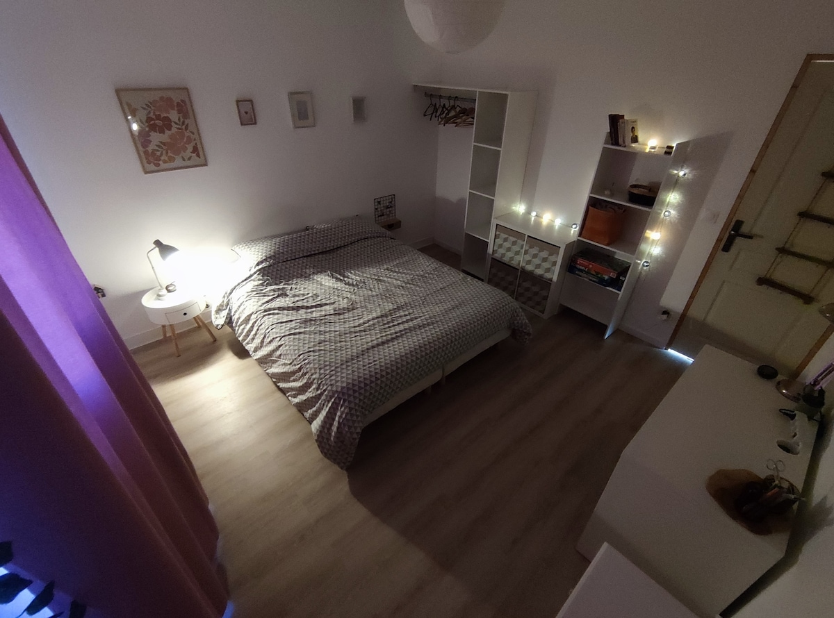 Reserva inmediata: puede reservar directamente, sin esperar la validación. Este alojamiento en la planta baja combina encanto y comodidad, ideal para 2 adultos, un bebé o una persona que viaja por trabajo. Bañado en luz natural gracias a sus techos altos, ofrece un ambiente espacioso y relajante, perfecto para relajarse o trabajar en buenas condiciones. Quedo a su disposición para responder a cualquiera de sus preguntas para preparar su estadía.