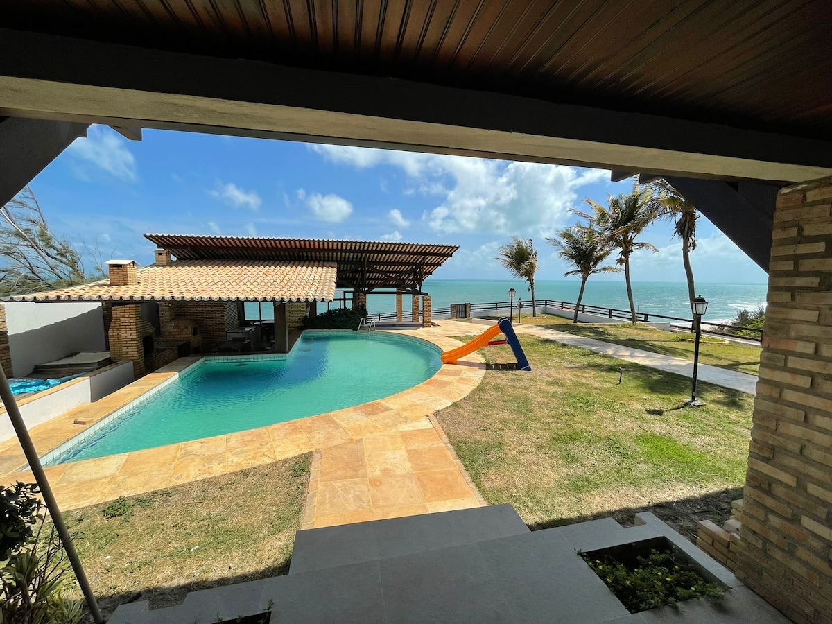 Amplia casa con dos plantas, balcones, 6 dormitorios (4 suites), garaje con cinco plazas, jardín, piscina y terraza con barbacoa. A sólo 700 metros del Beach Park, en Porto das Dunas: playa tranquila, con una excelente estructura y ambiente familiar. La casa tiene una cocina equipada con estufa, nevera, congelador, gelágua, microondas y utensilios básicos; sala de estar con cómodo sofá y TV con canales por suscripción. Ofrecemos ropa de cama y toallas; internet wifi de 650 MB. Lugar muy seguro y tranquilo.