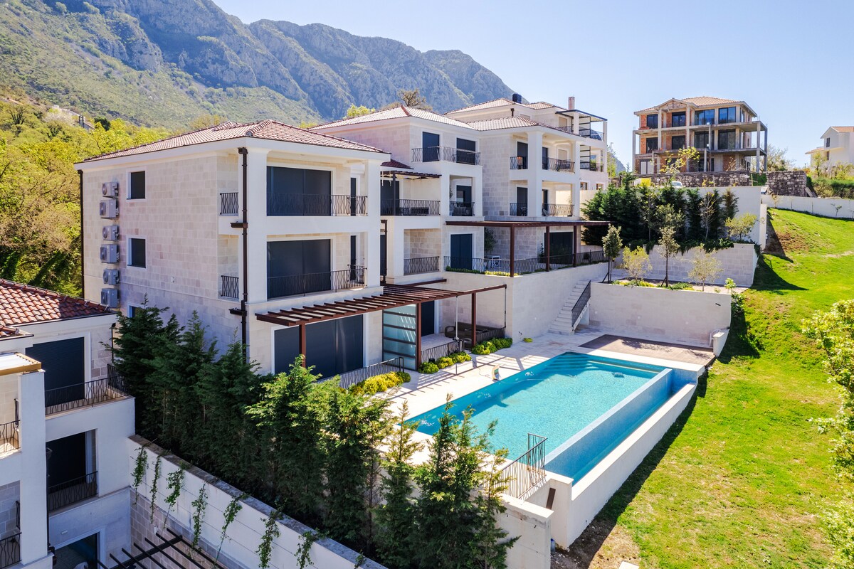 Apartamento de lujo de 1 dormitorio en una zona tranquila con impresionantes vistas al mar y a Sveti Stefan. Disfruta de una piscina de temporada (compartida, abierta del 1 de junio al 1 de octubre) para la máxima relajación. Perfecto para familias, amigos o parejas que buscan tranquilidad mientras se hospedan cerca de las atracciones. Elegante, cómodo e ideal para una escapada inolvidable al Adriático. ¡Reserva ahora y disfruta de la belleza de la costa!