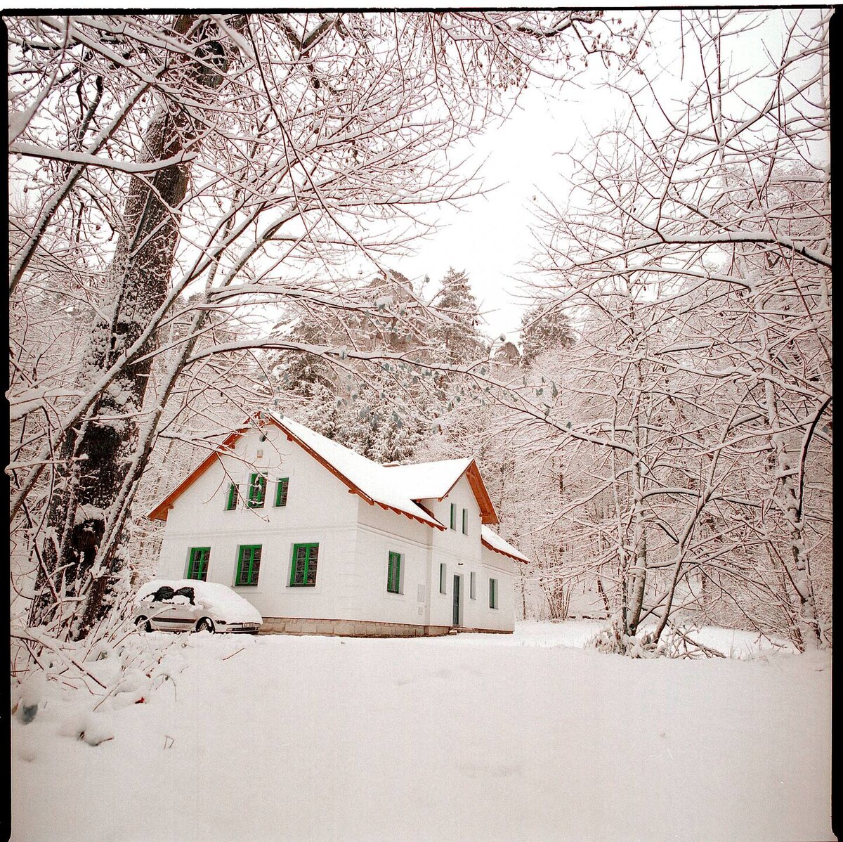 Casa romántica y espaciosa en el bosque junto al estanque, a la sombra de los árboles, en la zona rocosa llamada Skalák. Esta casa es adecuada para organizar seminarios, fiestas o reuniones de grupos más grandes de personas. La casa está en el bosque directamente debajo del castillo de Hrubá Skála. En verano, los dos dormitorios inferiores son más oscuros porque la casa se encuentra entre los altos árboles del bosque. En el piso de la sala de estar es posible extender o dormir esteras. El máximo cómodo es de 16 a 20 personas.