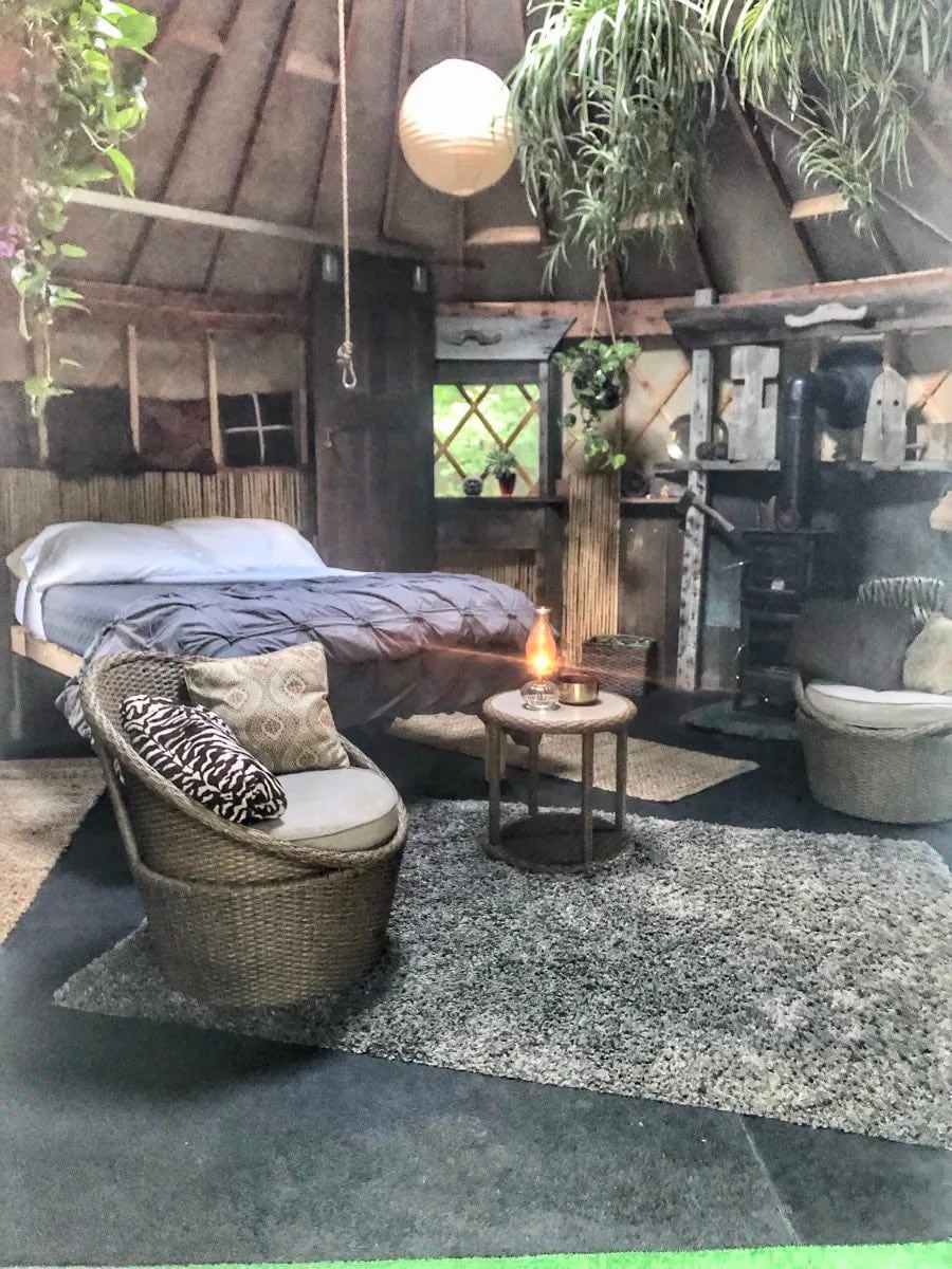 A charming, stylish 20’ yurt in the woods on our small, off-the-grid goat farm! If you are looking to get away from it all (and still be close to SO much) - this is the place for you! Enjoy a nap in the hammock, s’mores around a campfire, a great night’s sleep under the stars, a country breakfast delivered to your door - and goats! Take a walk in the woods...enjoy the artistic landscaping...try goat yoga! Or, experience some of the area’s AMAZING food, beverages, shopping, and attractions!