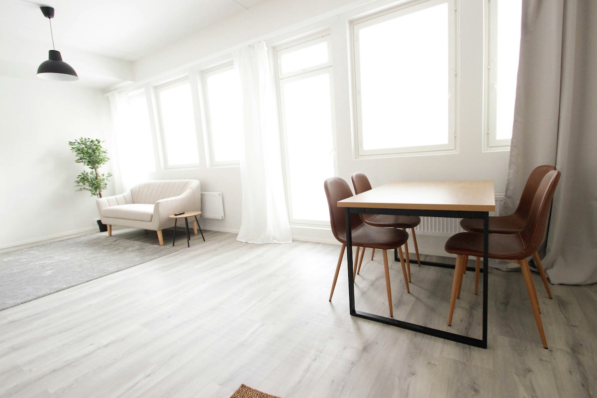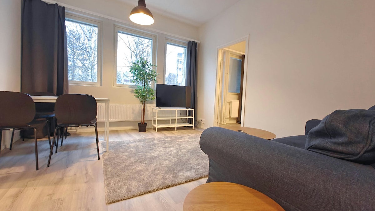 Welcome to our cozy 2-bedroom apartment in Jyväskylä, blending modern comfort and convenience. Located on the second floor of a 5-story building, it accommodates up to 7 guests, ideal for families, groups, or solo travelers. The well-equipped kitchen includes a dishwasher, oven, and fridge. Enjoy meals in the dining area or on the balcony. Unwind in the shared sauna or relax in the living room with a movie. Explore nearby parks and cultural attractions, experiencing the charm of Jyväskylä.