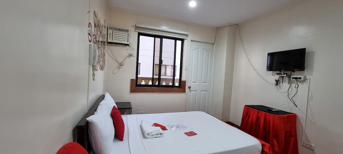 GOOD FOR 2 PERSONS AMENETIES: Airconditioning 32” Smart TV with CATV 6” Thk. Uratex Bed Electric Fan Min Fridge Private Comfort Rm Hot & Cold Shower Bidet Hair & Hand Dryer Full Size Mirror Desk and Chair Line with Pillows Wardrobe Closet Towels & Toiletries Slippers Safety Box Free Parking Free Wifi (100 mbps) Free use of Water Dispenser Nipa Hut Al fresco Food Available for Orders 24- hour Service 24/7 CCTV