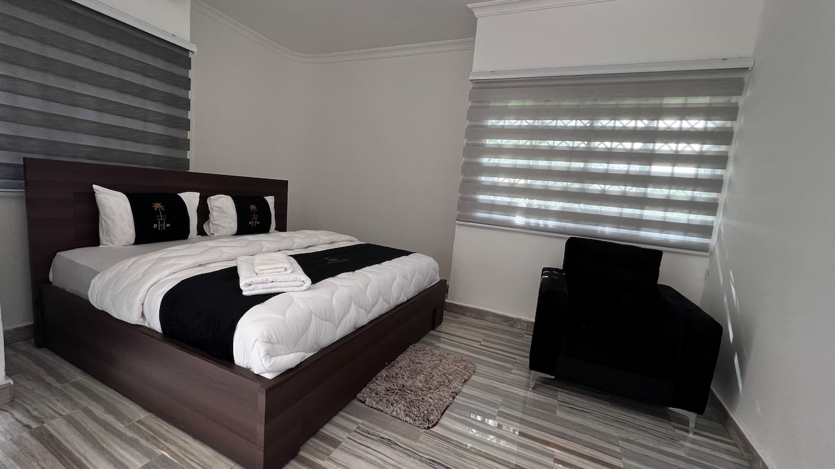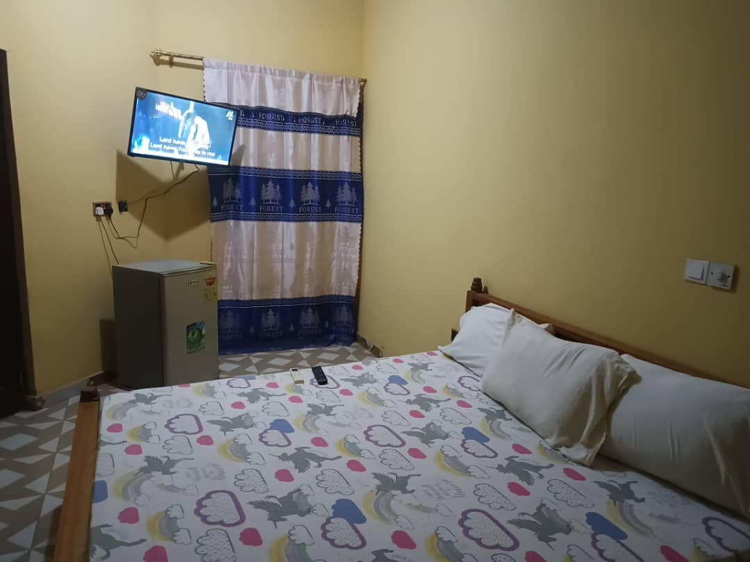 ¡Olvídate de tus preocupaciones en esta amplia y serena casa de huéspedes 1/1 en Cape Coast, Ghana! Tendrás 2 unidades de aire acondicionado frío que puedes encontrar en el dormitorio y la sala de estar. Ventiladores de techo en cocina, sala de estar y dormitorio. Disfruta de una agradable ducha caliente, una increíble cama tamaño queen suave y cómoda para relajarte. Mientras te relajas, disfruta de Netflix o de nuestro excelente servicio de WiFi. Cocina de buen tamaño con todas tus necesidades básicas de cocina para crear una comida increíble. Una pequeña estación de trabajo para manejar los arreglos de negocios de última hora.
