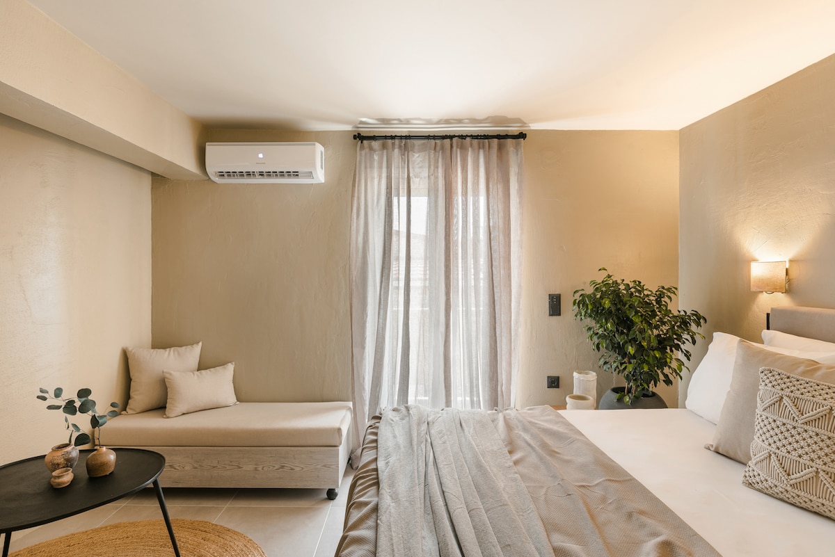 Celés es para aquellos que encuentran belleza en la quietud. Ubicado en la parte trasera más tranquila del edificio, ofrece más espacio para respirar, tanto en su generoso diseño como en su baño de gran tamaño cuidadosamente diseñado. La vista se abre al ritmo suave de la vida cotidiana, conectándote a tierra después de un día de sol, mar o paseos por la ciudad. Es un lugar para relajarse, estirarse y recargar energías. Como todas nuestras suites, es completamente nueva, tranquila y está diseñada para ofrecer comodidad. La limpieza se proporciona cada dos días.