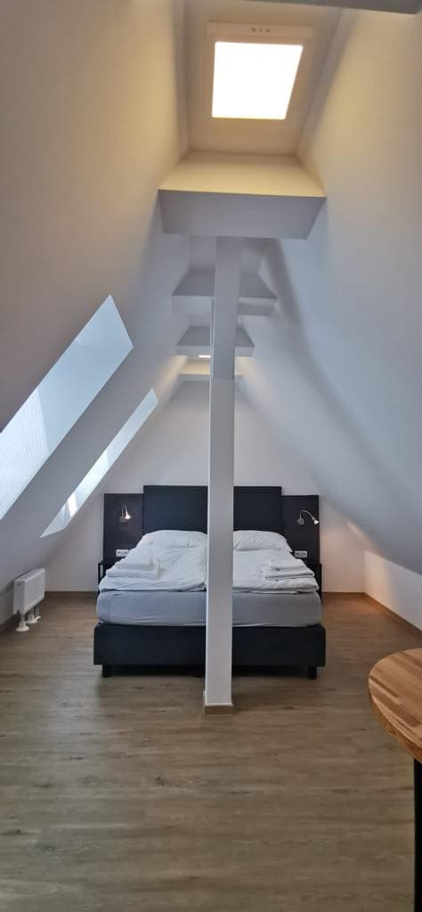 ¡České Budějovice, a 90 minutos en coche de Praga! Ático acogedor y luminoso de 110 m2 con terraza y plaza de aparcamiento, situado en una zona residencial, a 5 minutos a pie del centro de la ciudad. Aquí encontrarás paz y tranquilidad. Muy adecuado para familias y parejas. Aparcamiento: hay un límite de tamaño para los coches que pueden caber. La mayoría de los coches de pasajeros caben. Lo mejor es que me indiques el tipo de coche. El edificio no tiene ascensor. Dirección exacta: tř. 28. října 17, České Budějovice, 37001