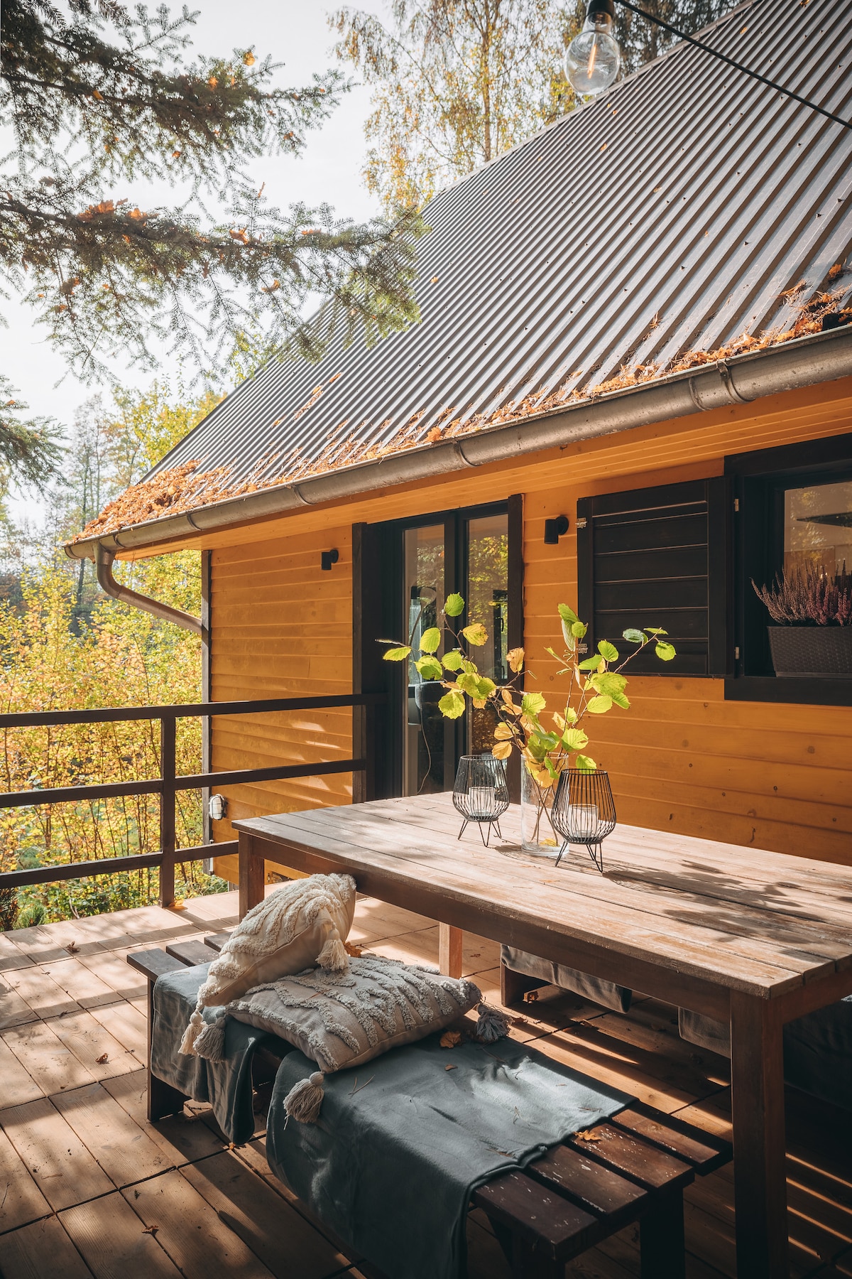 Nuestra casa se encuentra en un lugar semi-aislado en el bosque cerca del río Stropnice. Aunque a primera vista no lo parezca, hay vecinos en los alrededores, pero no se pueden ver desde la cabaña. Disfrute de sentarse junto a la chimenea con un libro y una taza de té o desayuno en la terraza. No hay wifi en la cabaña, así que disfrute del tiempo que pase con los demás.