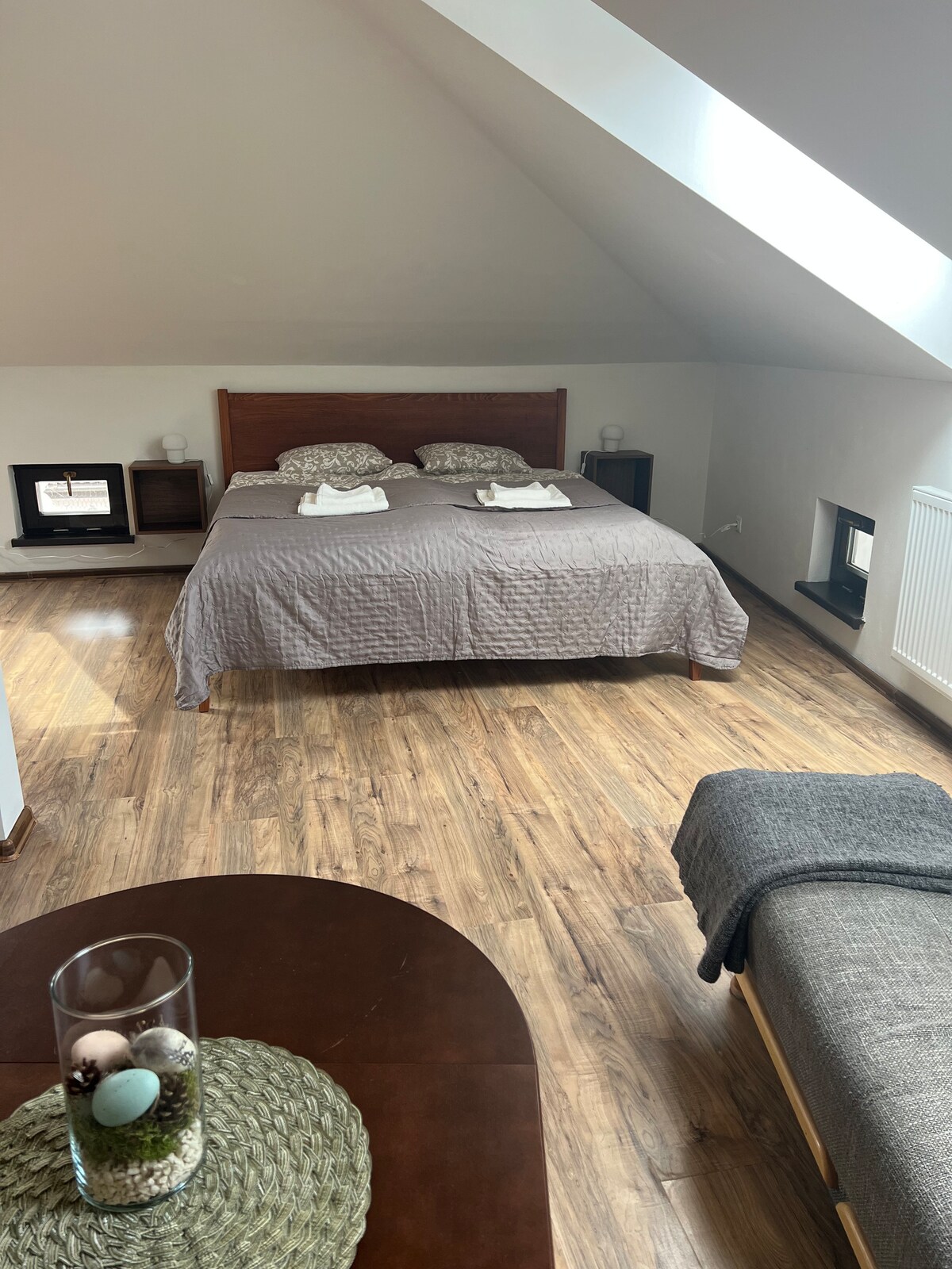 ¡České Budějovice, a 90 minutos en coche de Praga! Ático acogedor y luminoso de 110 m2 con terraza y plaza de aparcamiento, situado en una zona residencial, a 5 minutos a pie del centro de la ciudad. Aquí encontrarás paz y tranquilidad. Muy adecuado para familias y parejas. Aparcamiento: hay un límite de tamaño para los coches que pueden caber. La mayoría de los coches de pasajeros caben. Lo mejor es que me indiques el tipo de coche. El edificio no tiene ascensor. Dirección exacta: tř. 28. října 17, České Budějovice, 37001