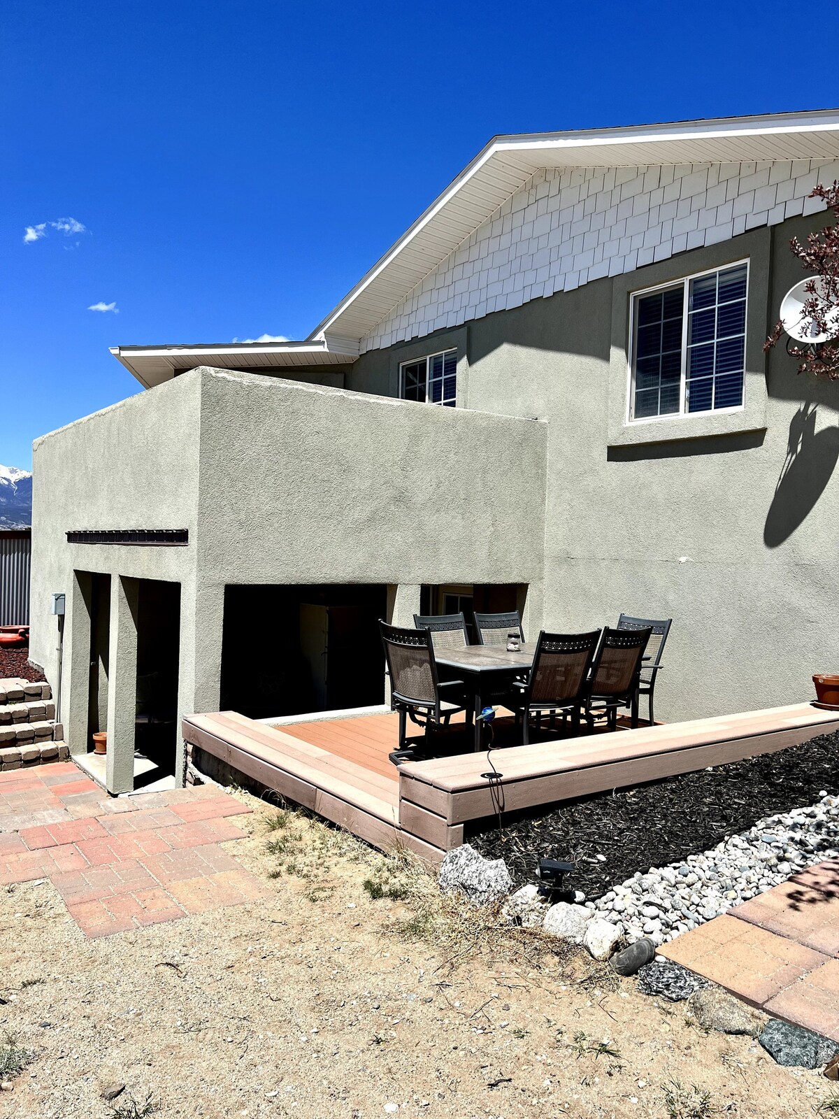 Te damos la bienvenida a una propiedad especial enclavada entre los árboles de piñones con vistas pintorescas de Collegiate Peaks. El diseño único de la casa de seis lados ofrece vistas a las montañas que rodean la propiedad. El alojamiento incluye el nivel superior de la casa con entradas separadas, cocina, comedor y salas de estar, 2 dormitorios / 2 baños. Balcón por dormitorio y dos terrazas compartidas. La propiedad está a poca distancia de la ciudad, estaciones de esquí, rutas de senderismo, lagos de pesca, aguas termales y rafting. (STR #000010)