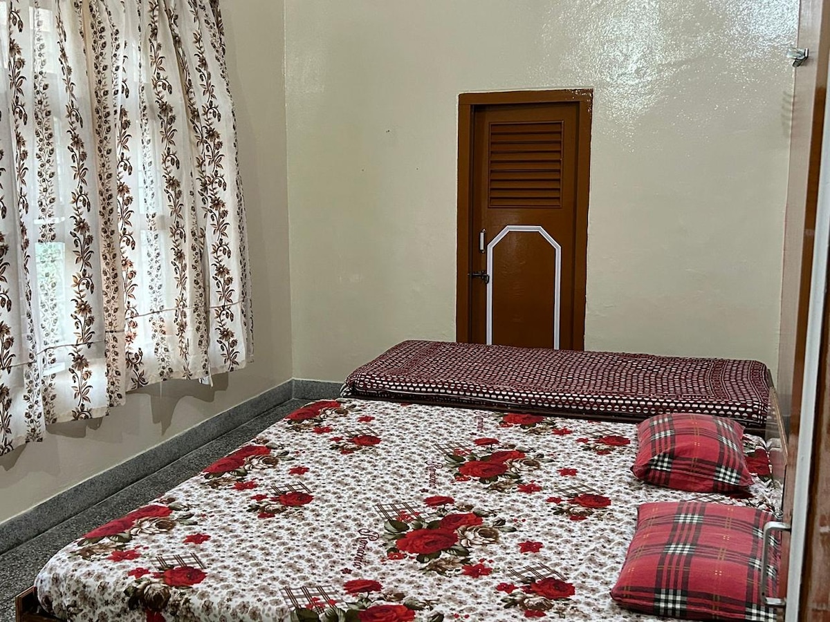 Retiro tranquilo de 2 dormitorios en una zona aislada, perfecto para la relajación o la exploración espiritual. La casa cuenta con un jardín delantero, estacionamiento para 2-3 autos, dos salas de estar, dormitorios acogedores con aire acondicionado, un inodoro adjunto y un balcón privado. Una cocina que garantiza comodidad. A solo 3 minutos a pie de Radha Soami Satsang Beas Koharchhan , a 7 km de la estación de tren Amb Andaura, a 15 km del templo Chintpurni y a 37 km del templo Jwalaji. Disfruta de un entorno sereno cerca de las principales atracciones.