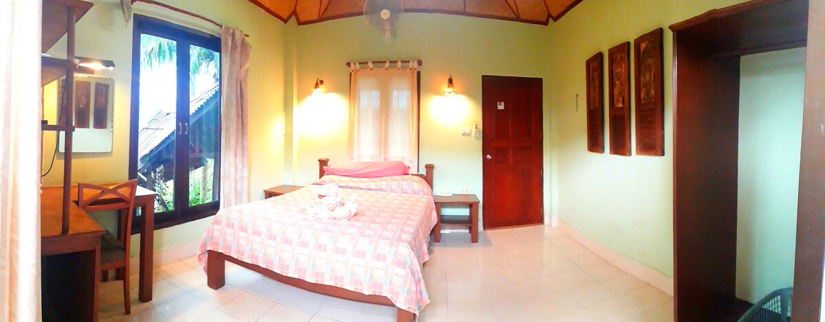 Nua Ton resort is set amongst lush rainforest ,we built around the forest , we did not cut down the forest to build it :) This room Can only be rented daily and can accommodate 2 people and does not accept children. The waterfall runns right past our cafe and relax area set amoungst the trees and has a beautiful cool breeze and peacefulness about the place This was our famillys land and our dream to build , it is our little piece of surenity :) please come enjoy it with us :)