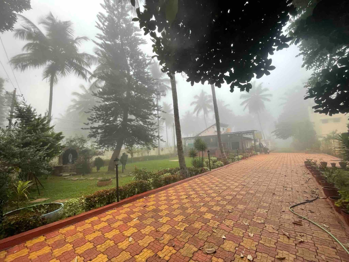 Superanfitrión✨️ ¡Te damos la bienvenida a nuestra escapada a una granja privada de 8 acres! Todo ello rodeado por la cordillera del bosque de Anchetty es tuyo, dado a un solo grupo a la vez. Dos casas de ensueño: una cabaña de estilo Mangalore y un espacioso 2BHK con vistas de 360° a la colina te esperan. Date un chapuzón en la piscina, pasa el rato con perritos juguetones y contempla la vegetación interminable a través de las tierras de cultivo y el bosque. ¡Descubre pavos reales, aves coloridas o incluso un jabalí salvaje! ¡El lugar perfecto para relajarte de camino a las cataratas Hogenakkal para disfrutar de vistas épicas!